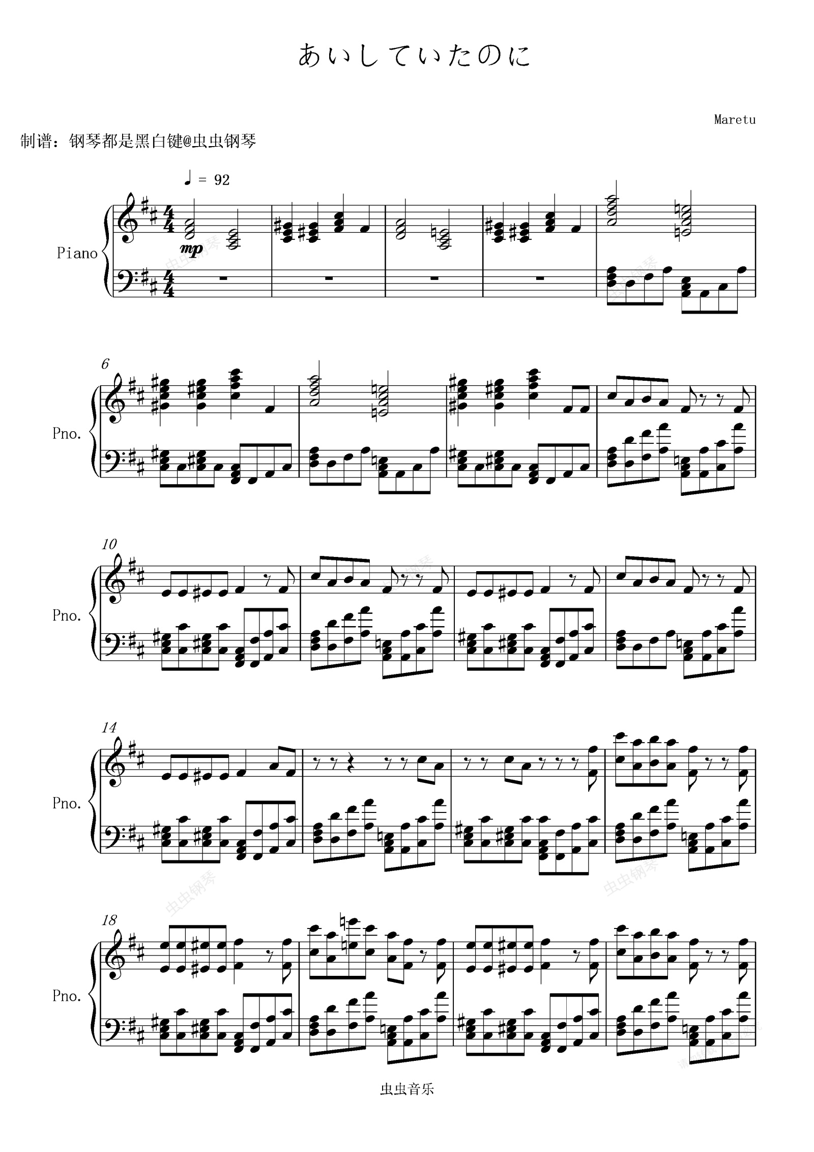 钢琴谱:[初音ミク]明明曾爱着你/あいしていたのに