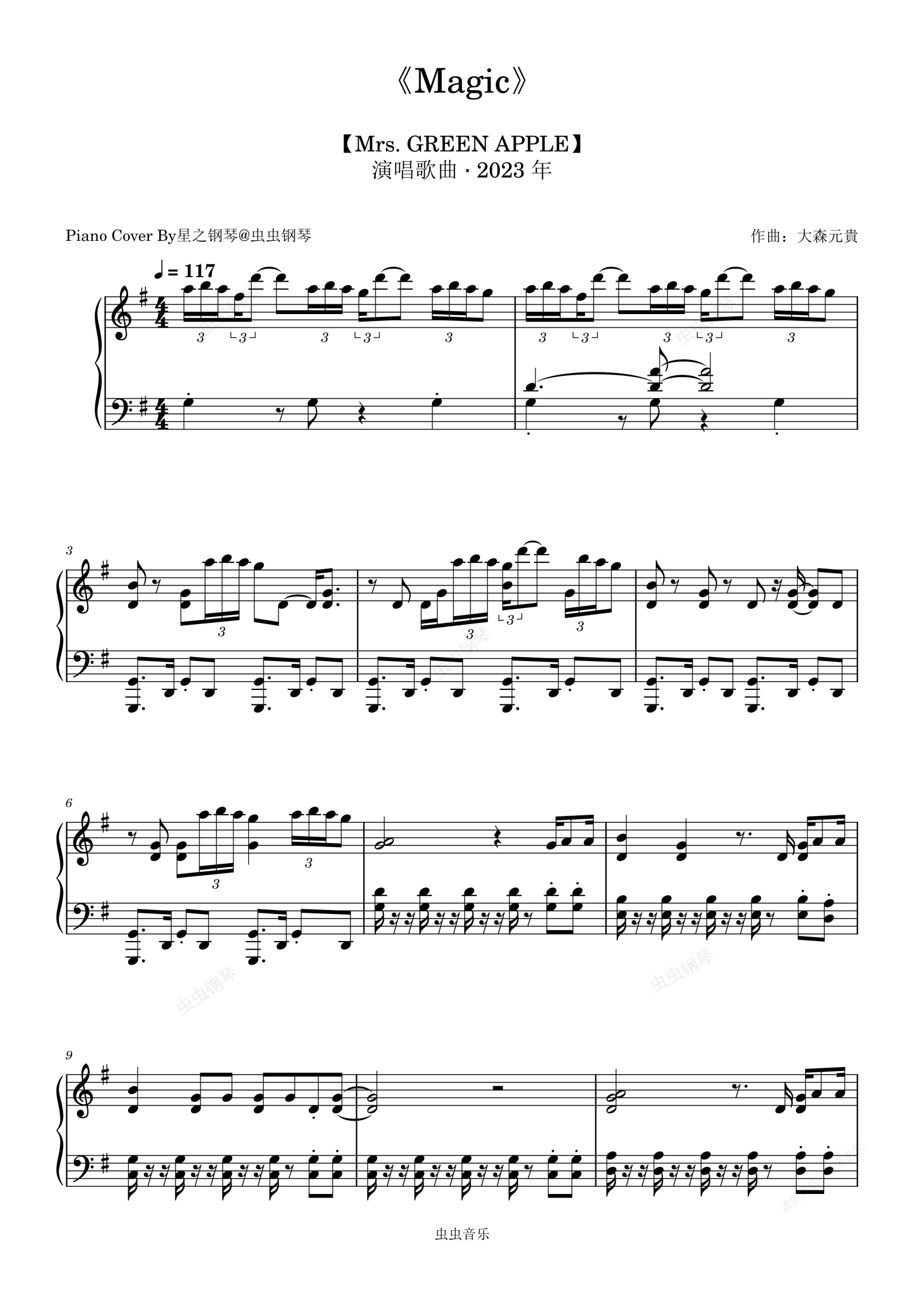 钢琴谱:【Mrs. GREEN APPLE】《Magic》钢琴还原独奏版~星之钢琴~