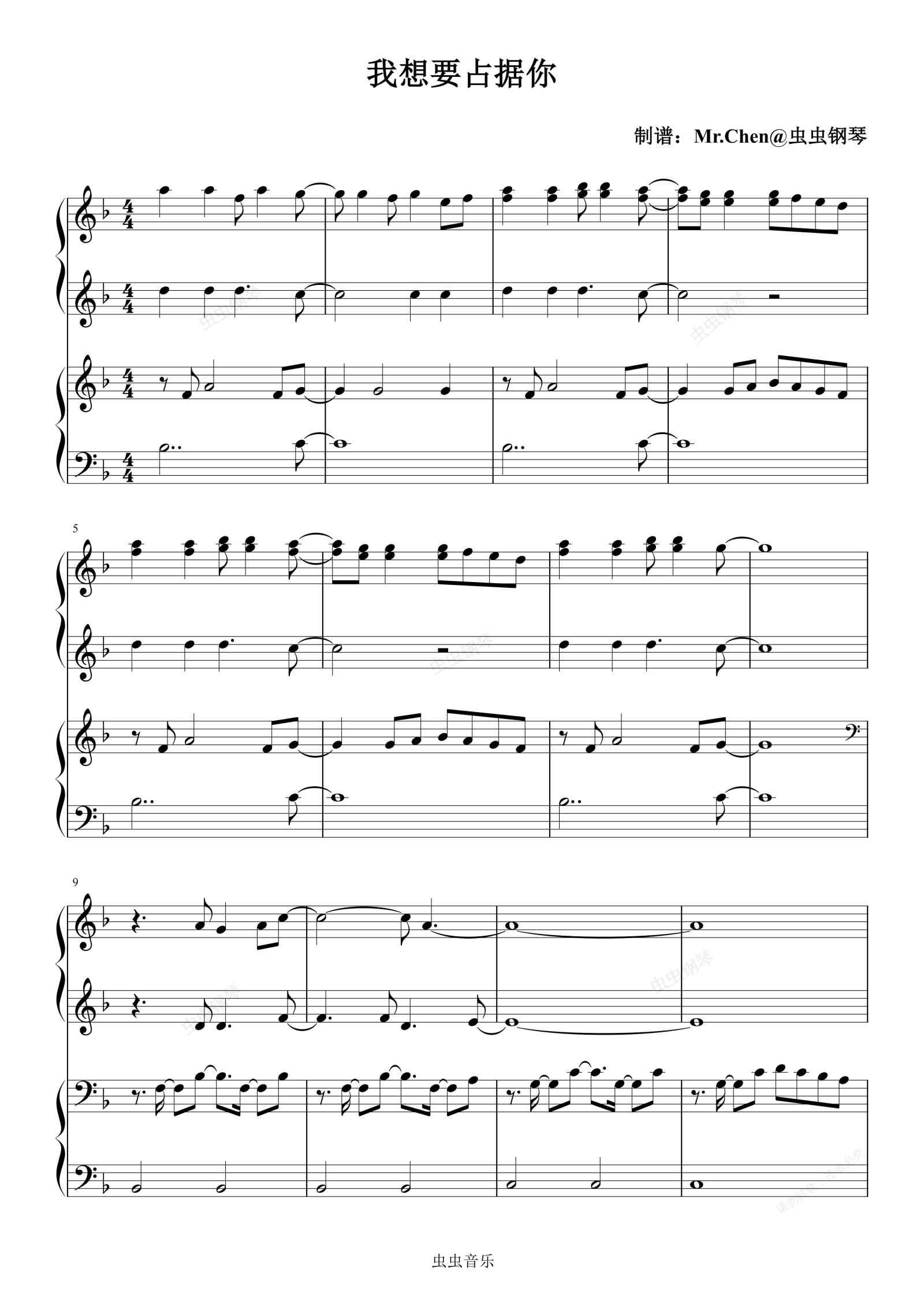 钢琴谱:我想要占据你 (四手联弹)F调 - 告五人