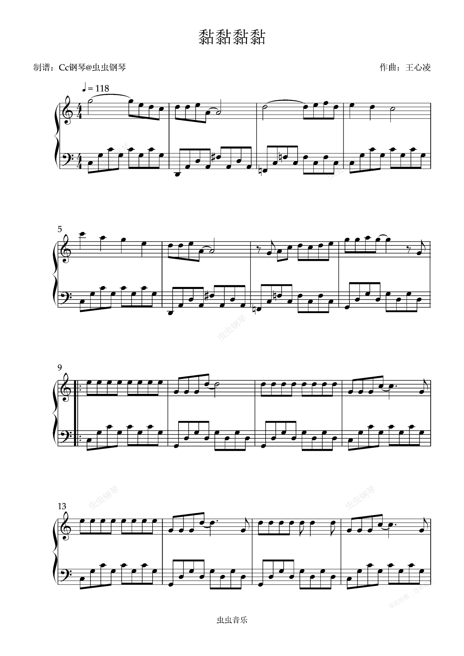 钢琴谱:黏黏黏黏 C调 好听易上手