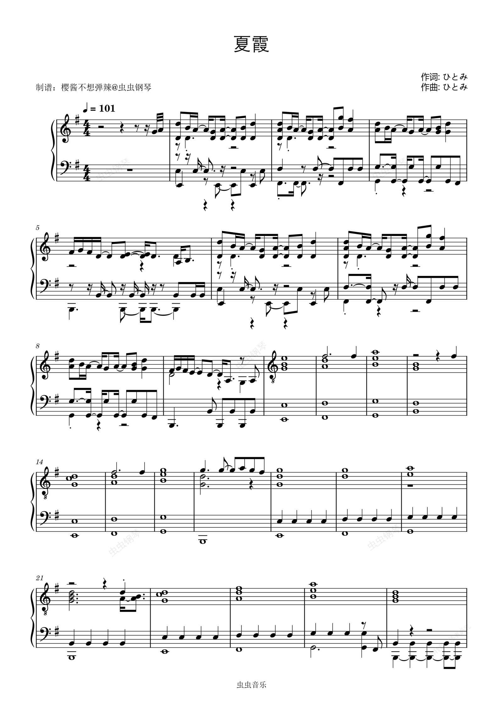 钢琴谱:夏霞 あたらよ
