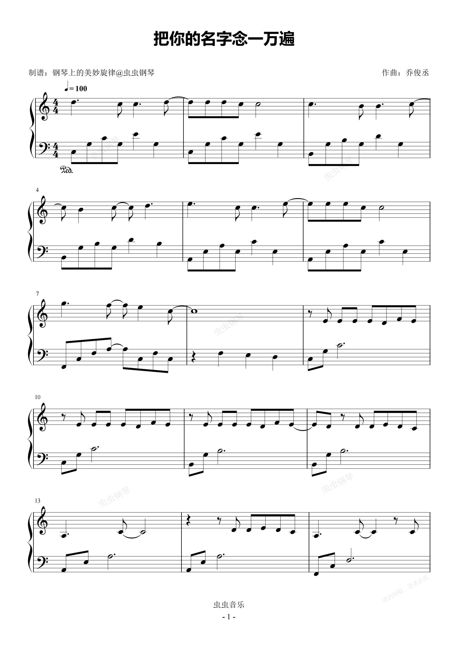 钢琴谱:把你的名字念一万遍 C调简易版 刘宇宁