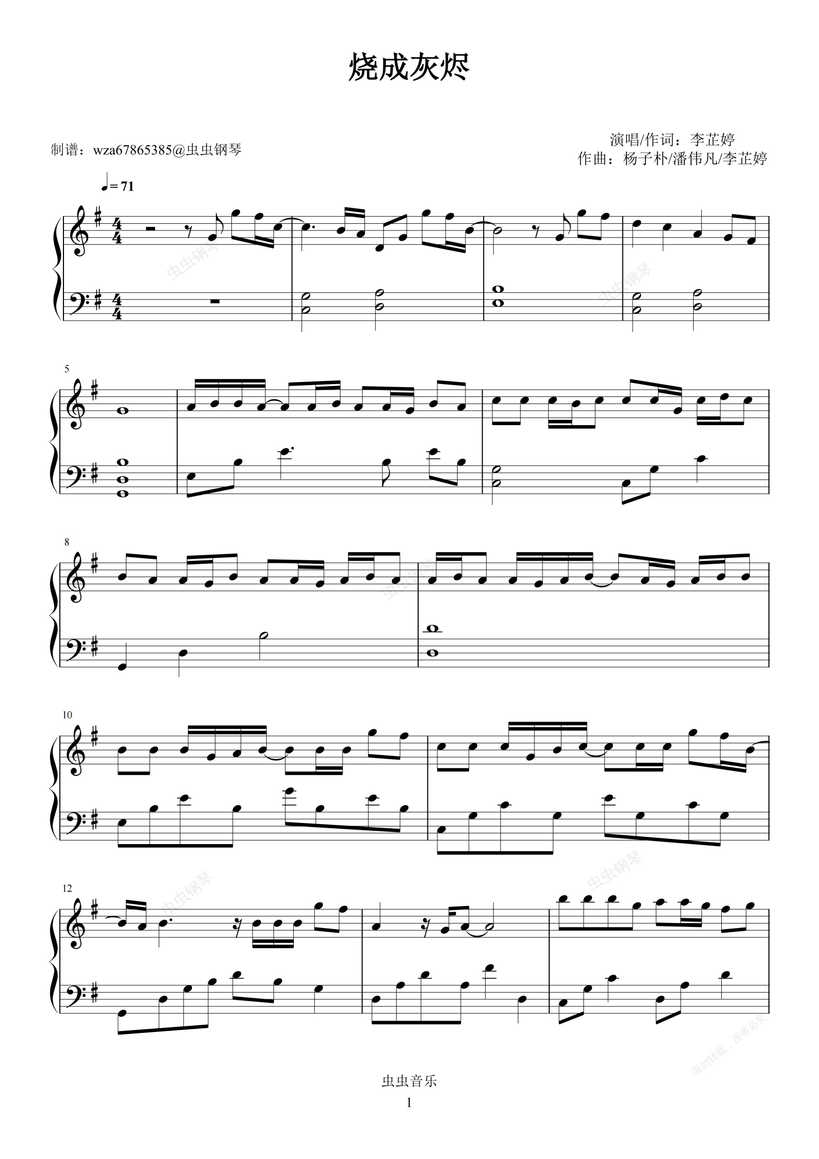 钢琴谱:烧成灰烬