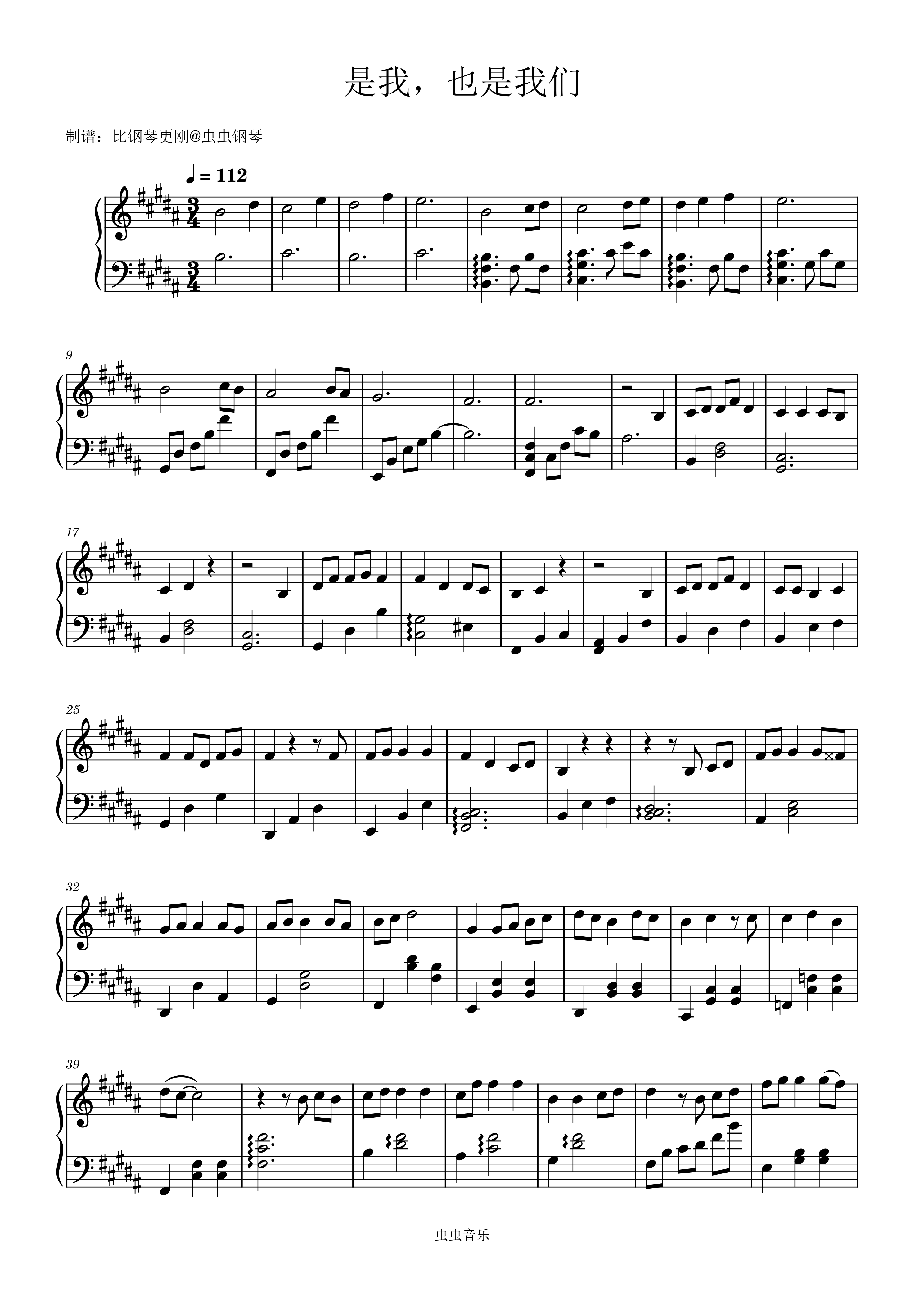钢琴谱:是我,也是我们(简化版-黄子弘凡)