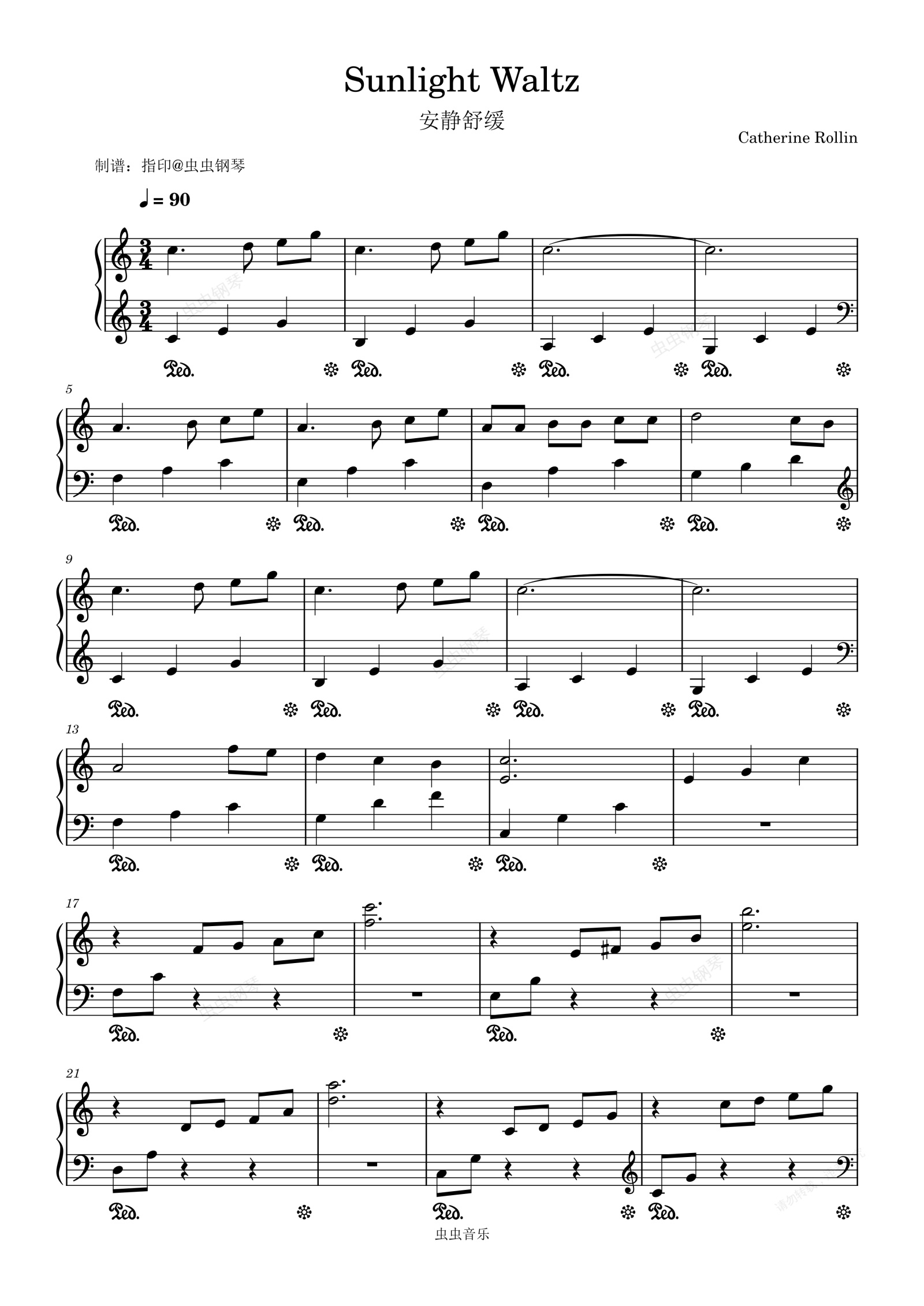 钢琴谱:治愈好弹《Sunlight Waltz》