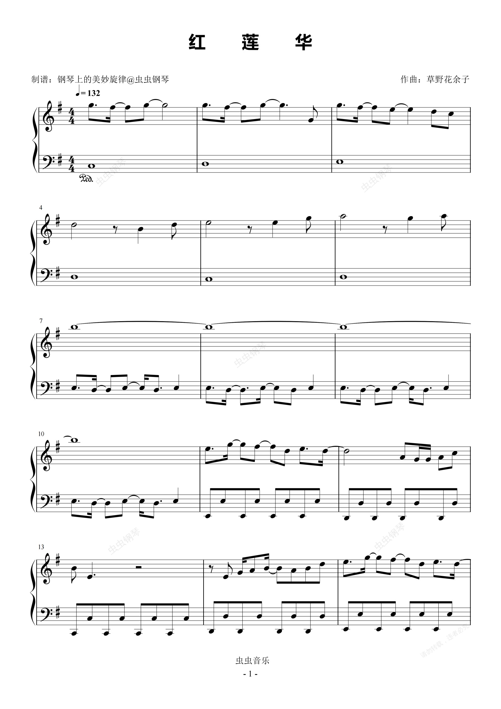 钢琴谱:红莲华 简易版 鬼灭之刃