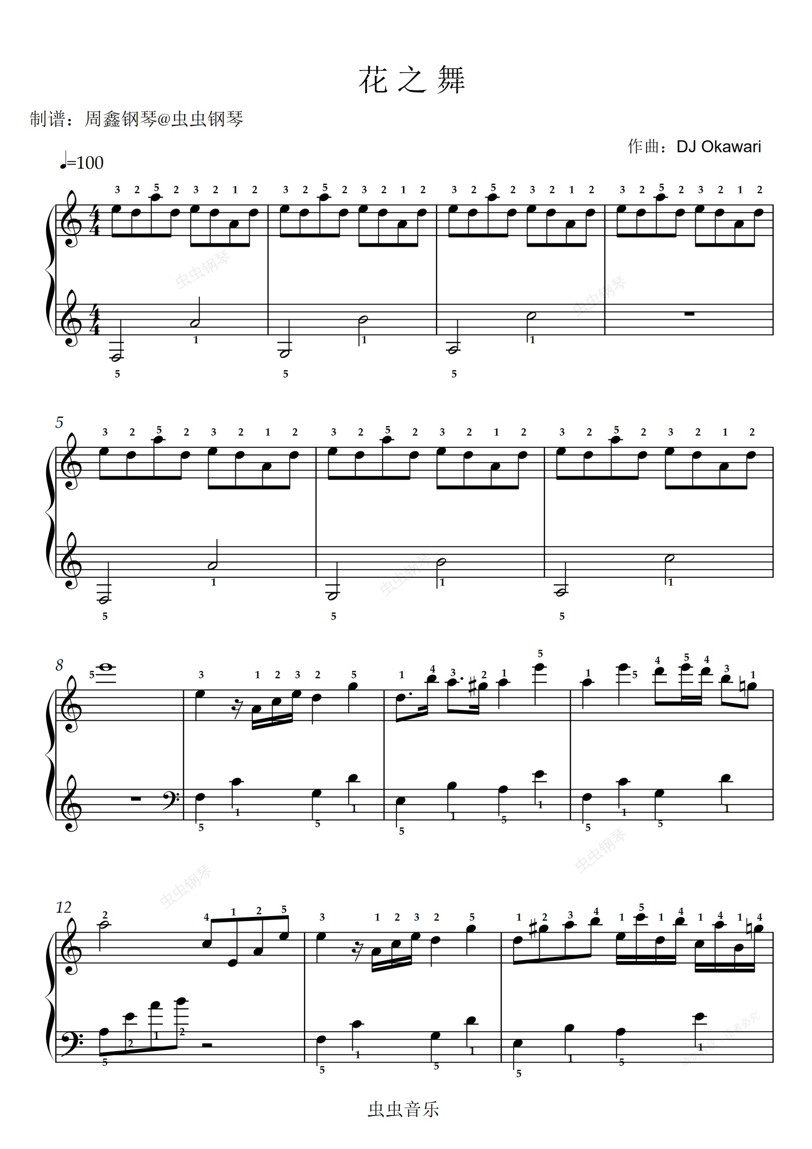 钢琴谱:《花之舞》C调 带指法 简单版