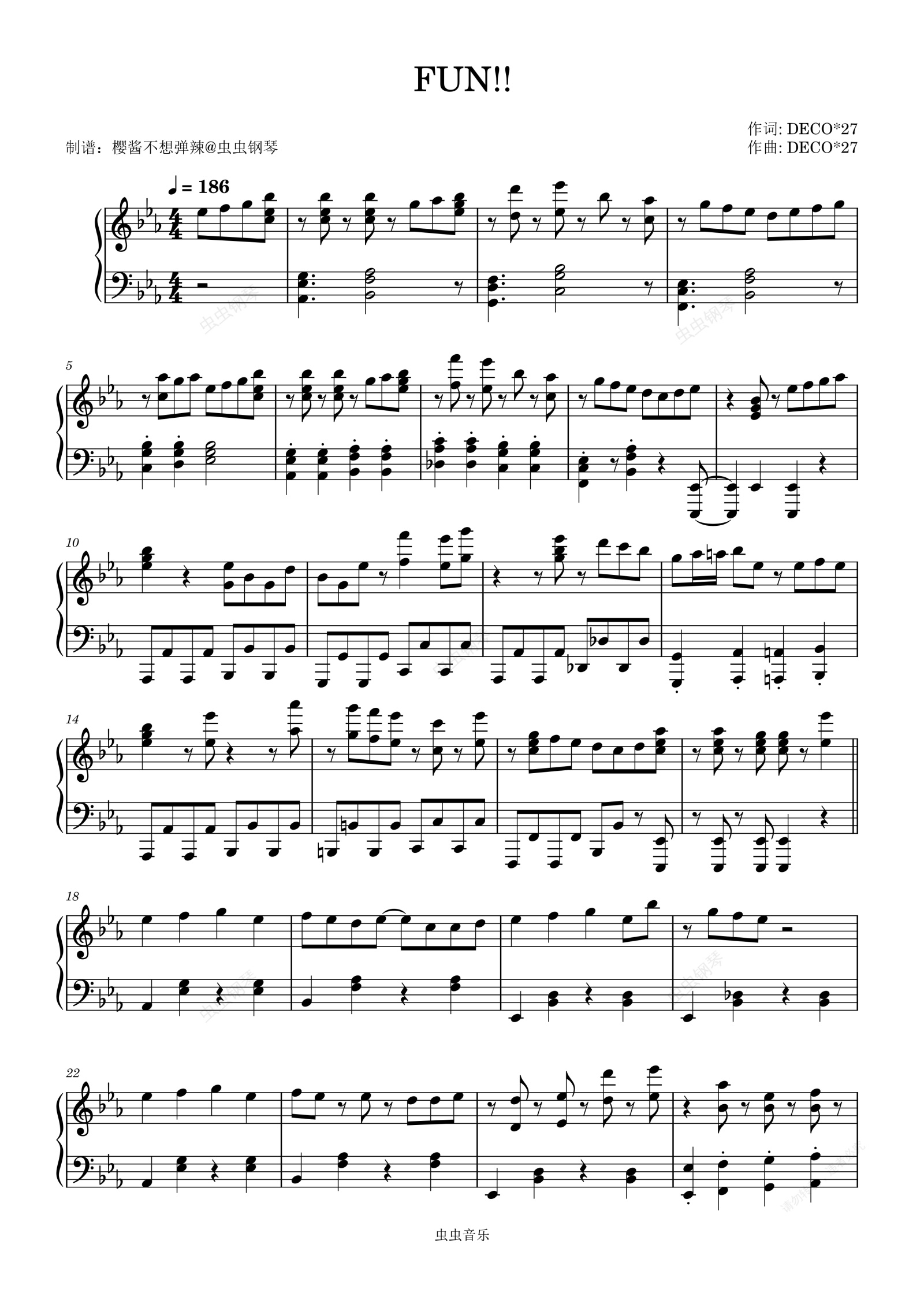 钢琴谱:FUN!! DECO*27/いよわ/初音ミク/鏡音リン/巡音ルカ/MEIKO