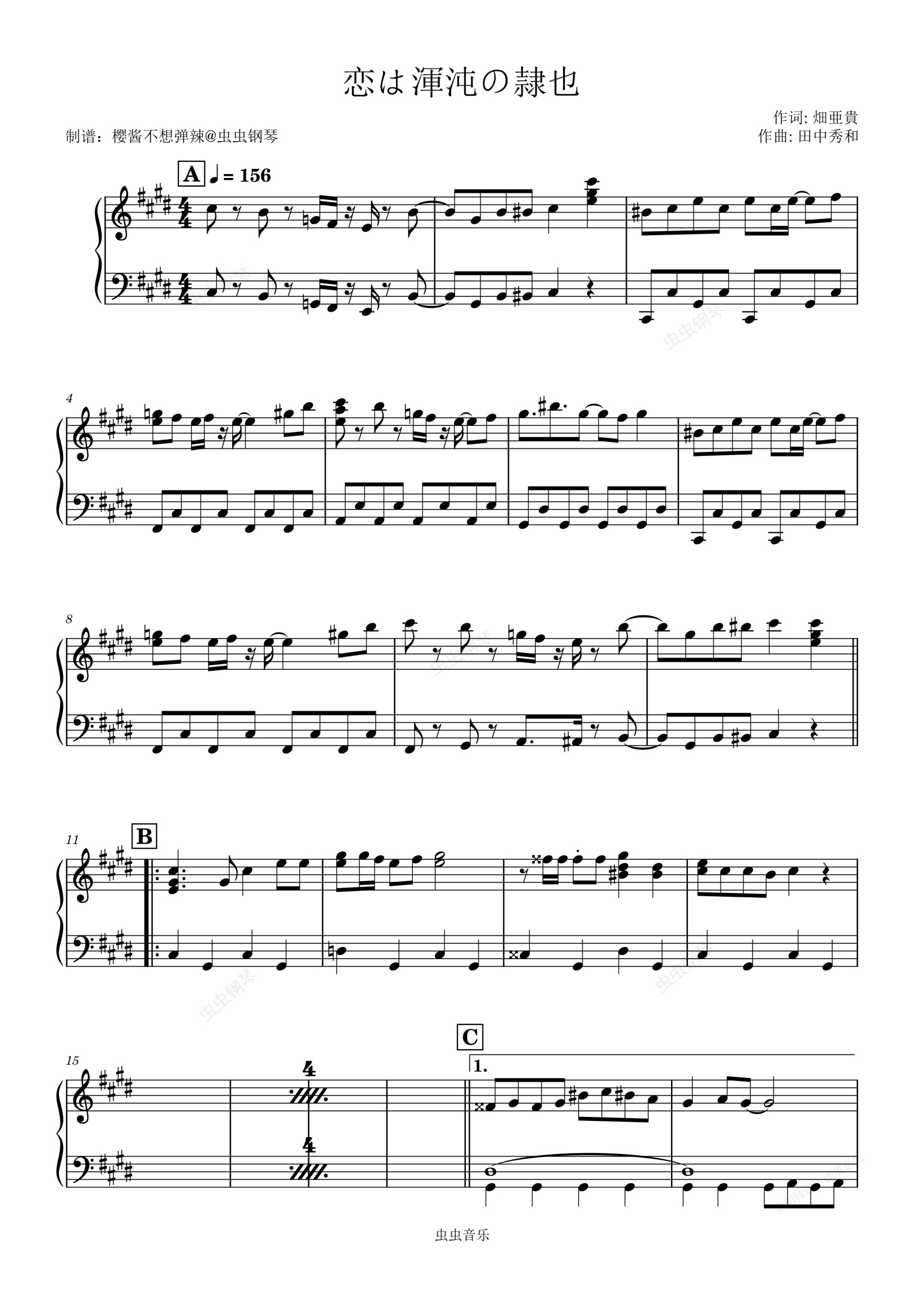 钢琴谱:恋は渾沌の隷也 (恋爱是浑沌之奴隶) 後ろから這いより隊G