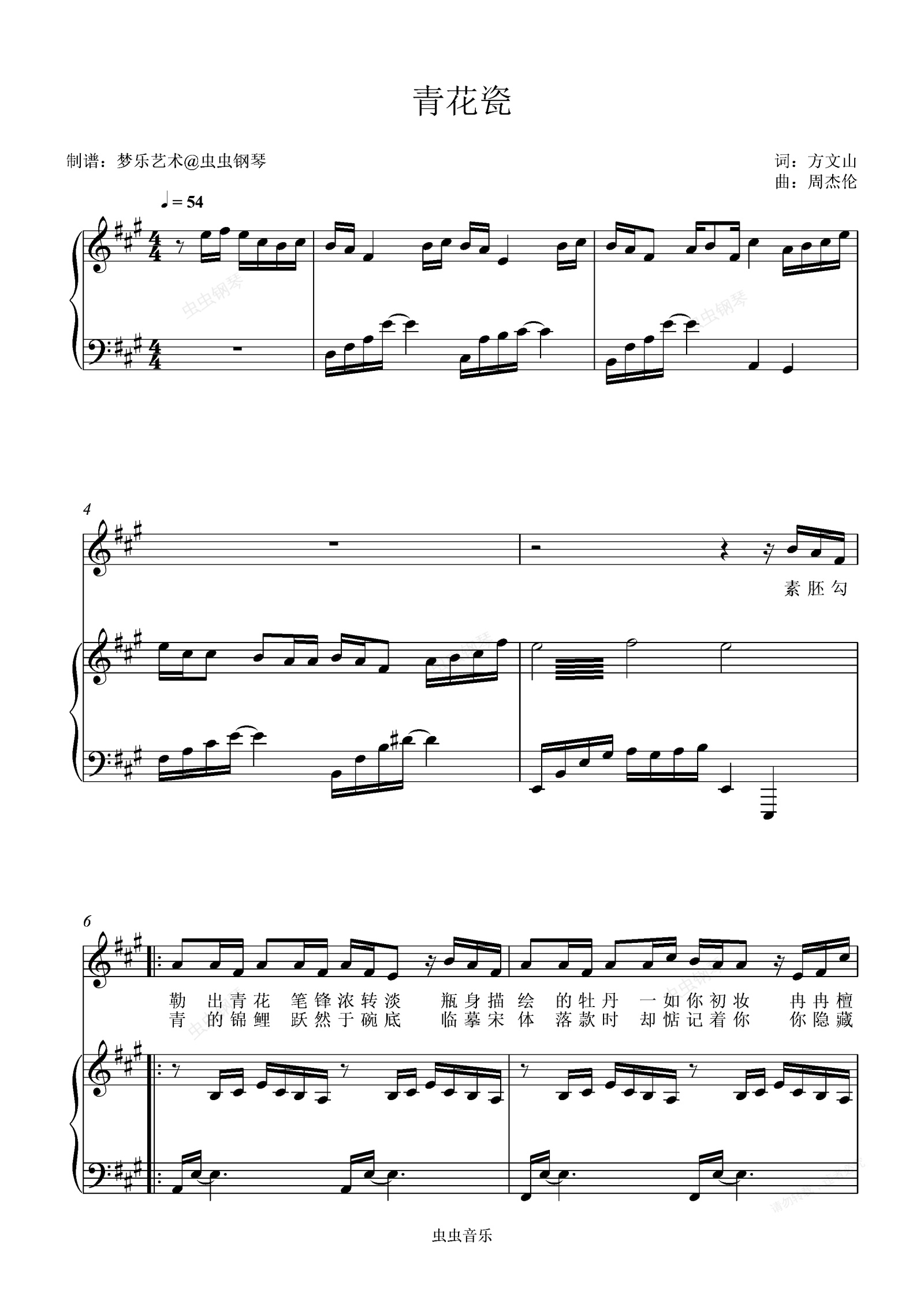 钢琴谱:《青花瓷》周杰伦 和弦弹唱版