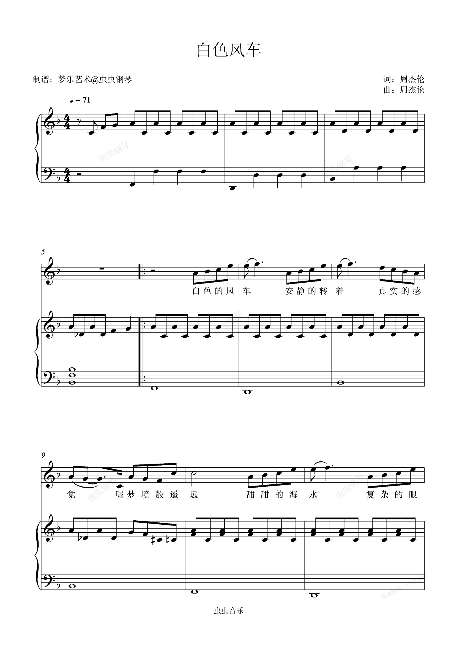 钢琴谱:《白色风车》周杰伦 和弦弹唱版