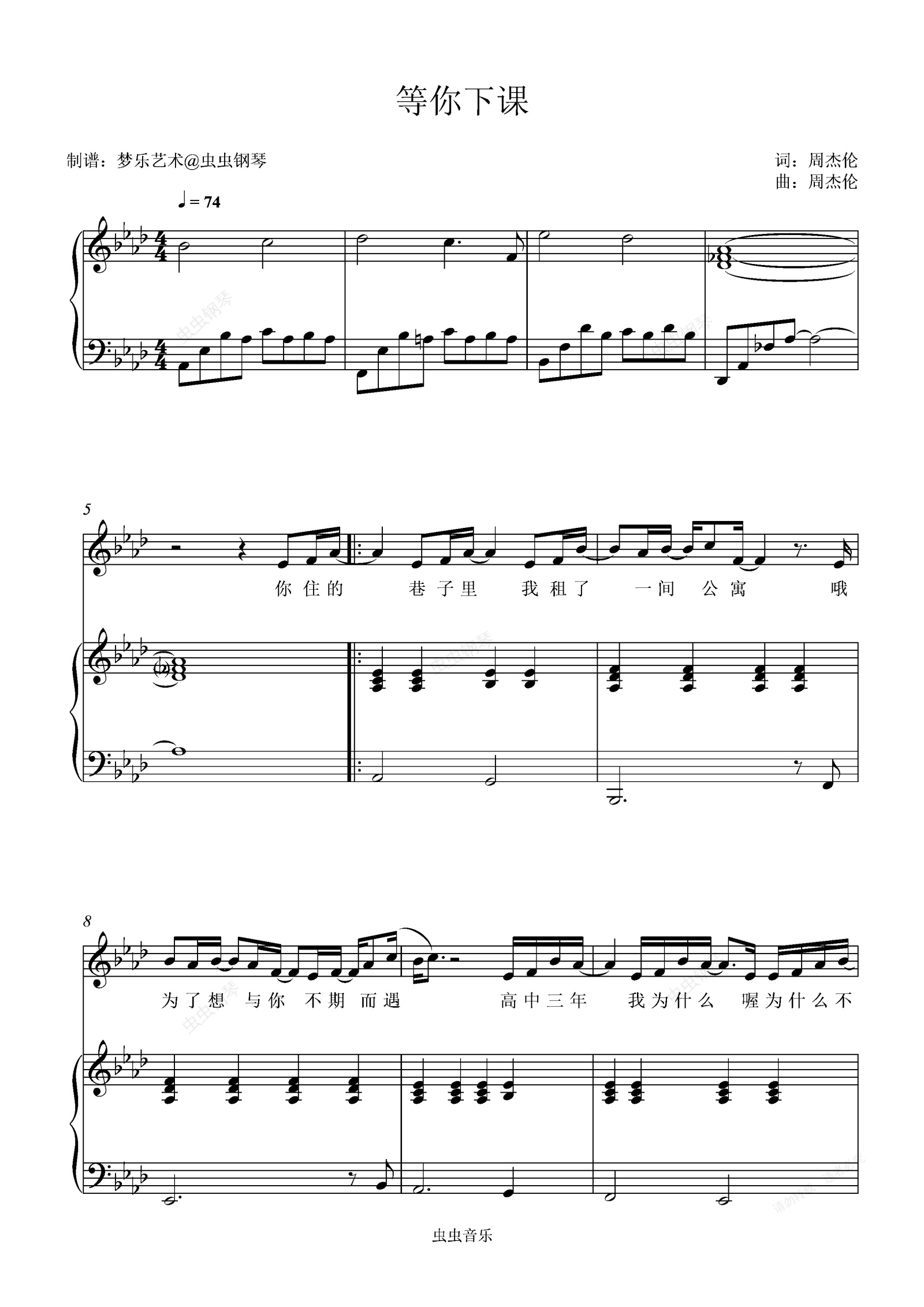 钢琴谱:《等你下课》周杰伦 和弦弹唱版