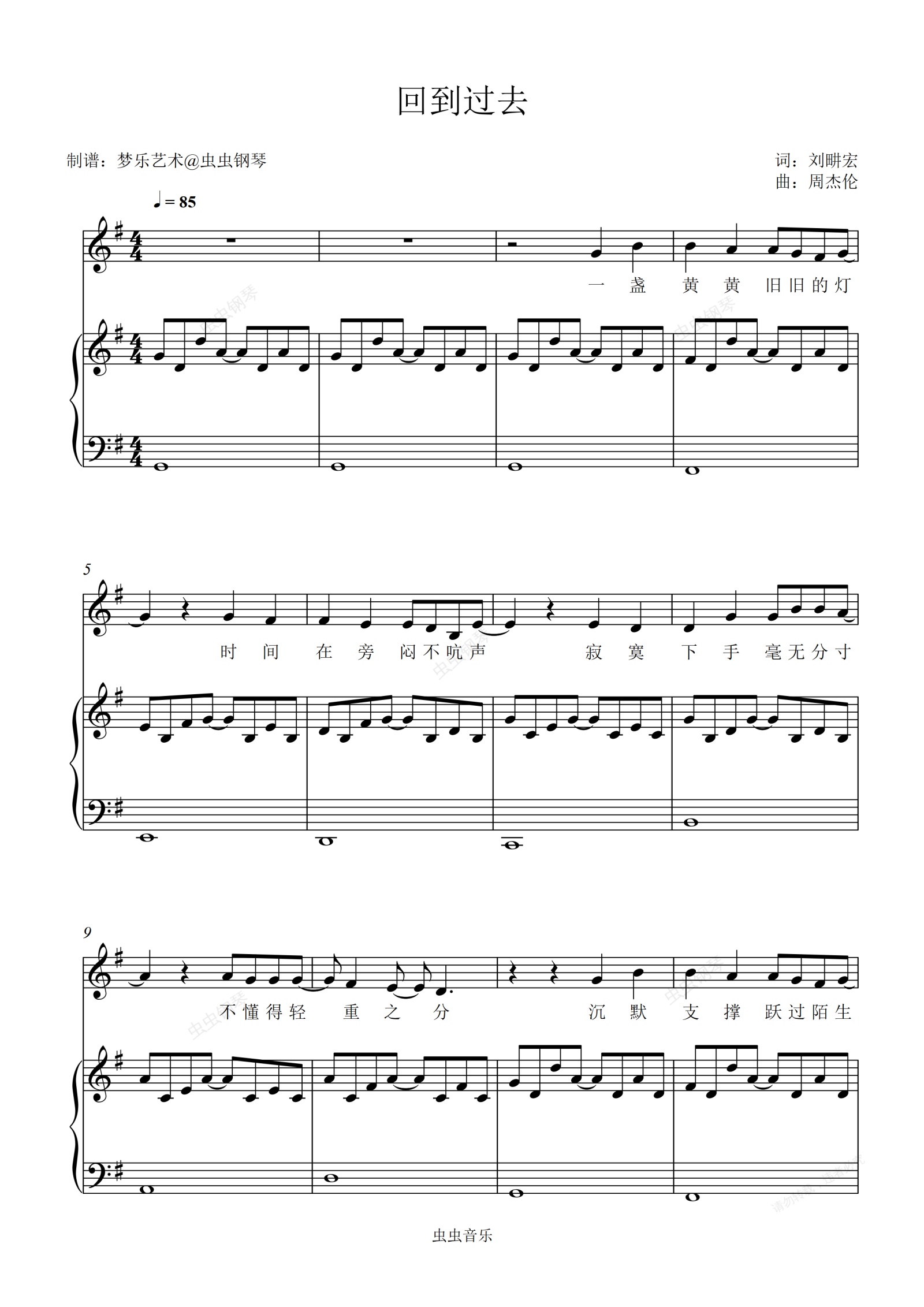 钢琴谱:《回到过去》周杰伦 和弦弹唱版