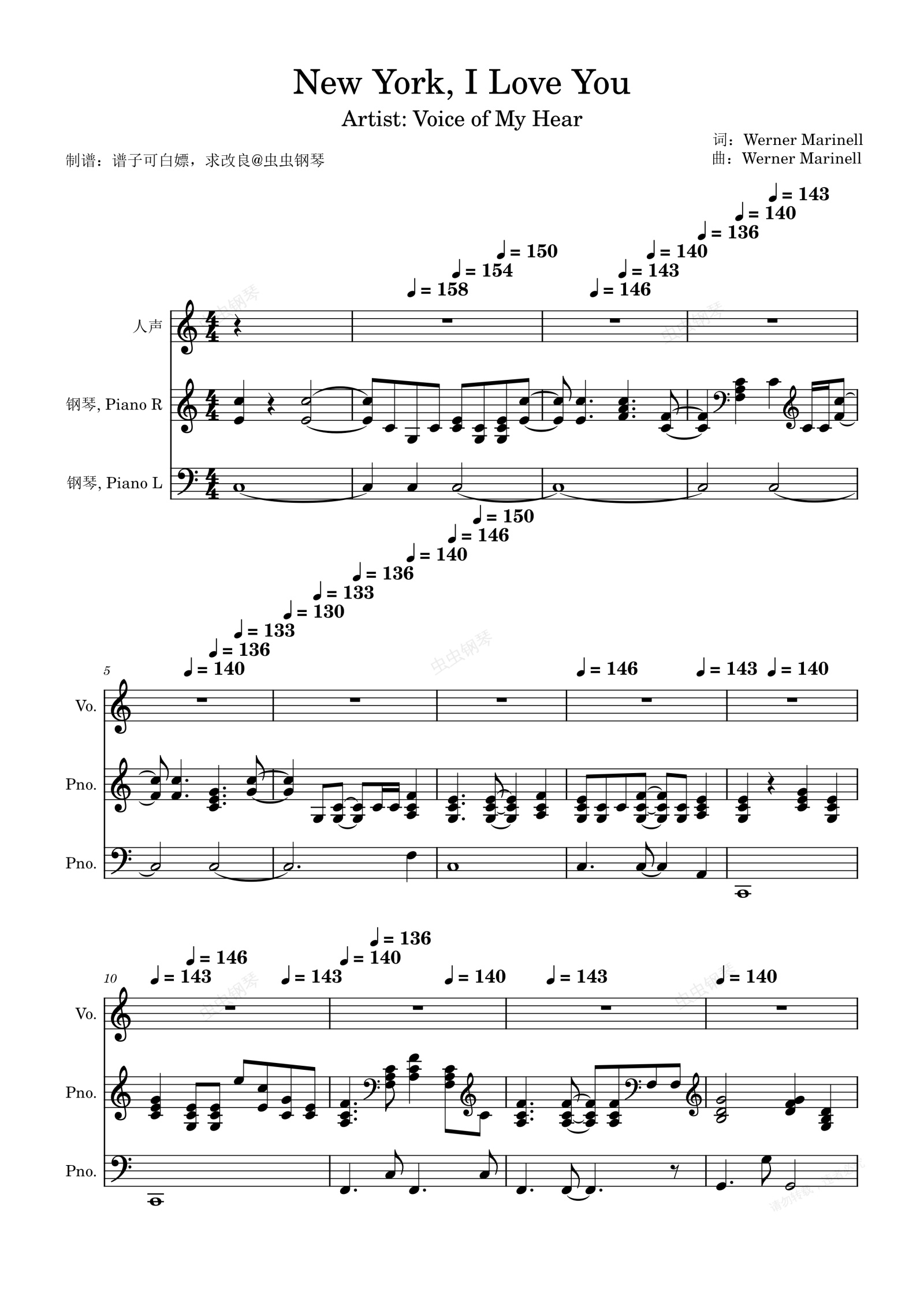 New York I Love You(Voice of My Heart)C大调钢琴弹唱谱