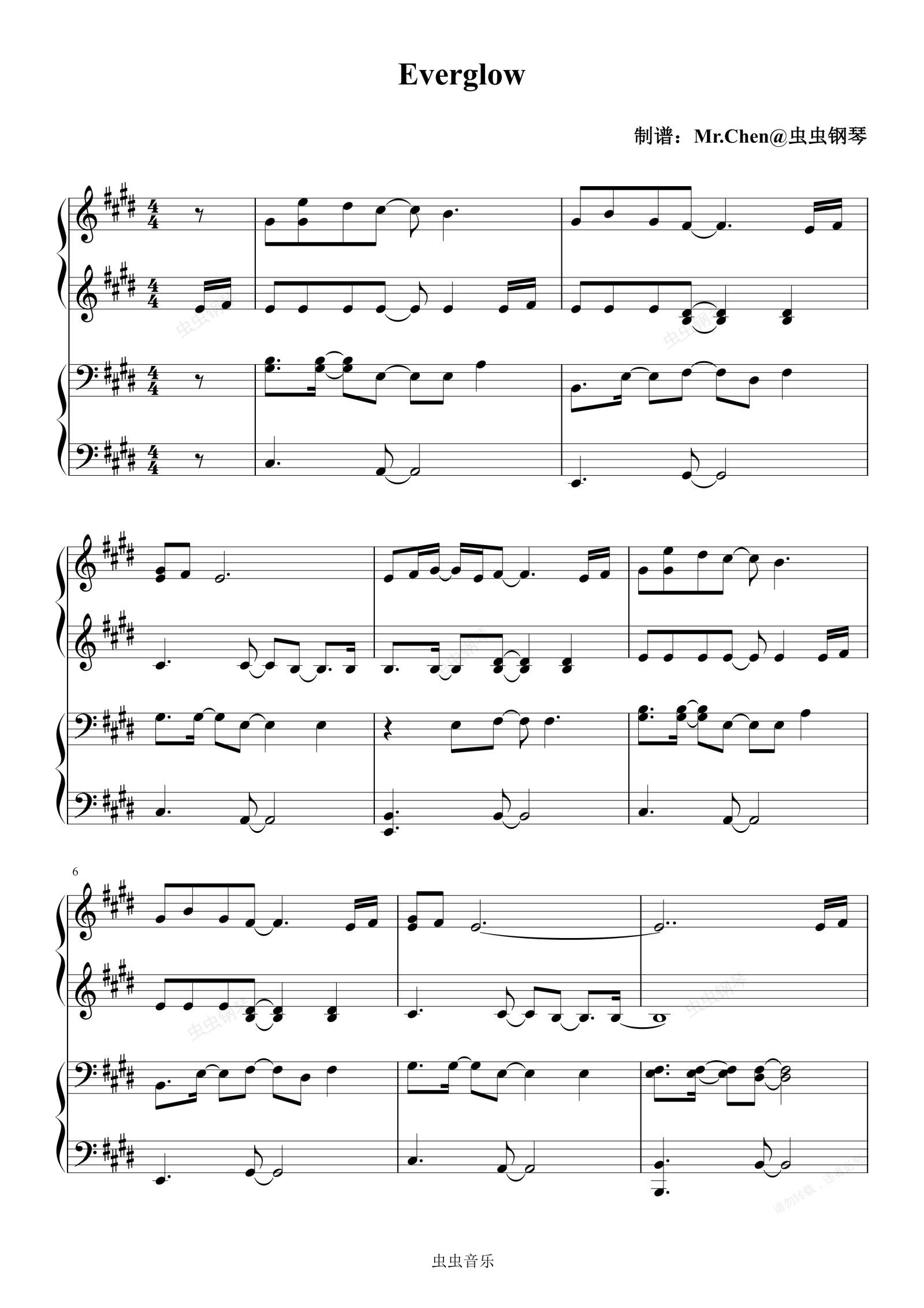 钢琴谱:Everglow (四手联弹)- Coldplay