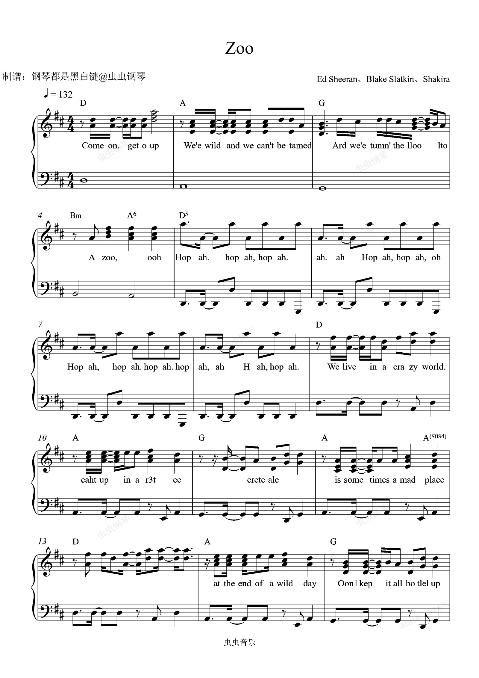 钢琴谱:《Zoo》疯狂动物城2(附歌词和弦标记演奏版)