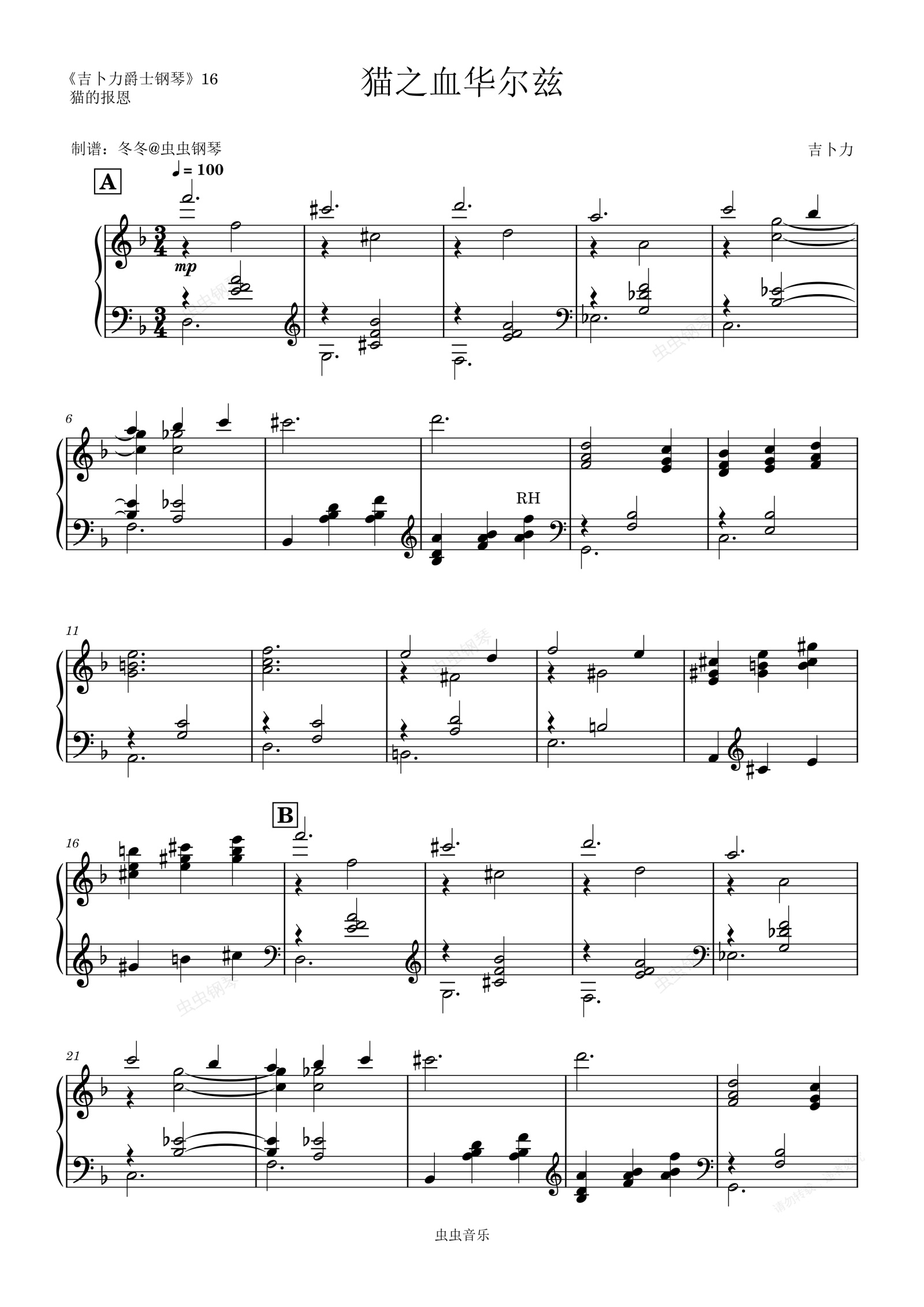 钢琴谱:猫之血华尔兹【爵士】猫的报恩