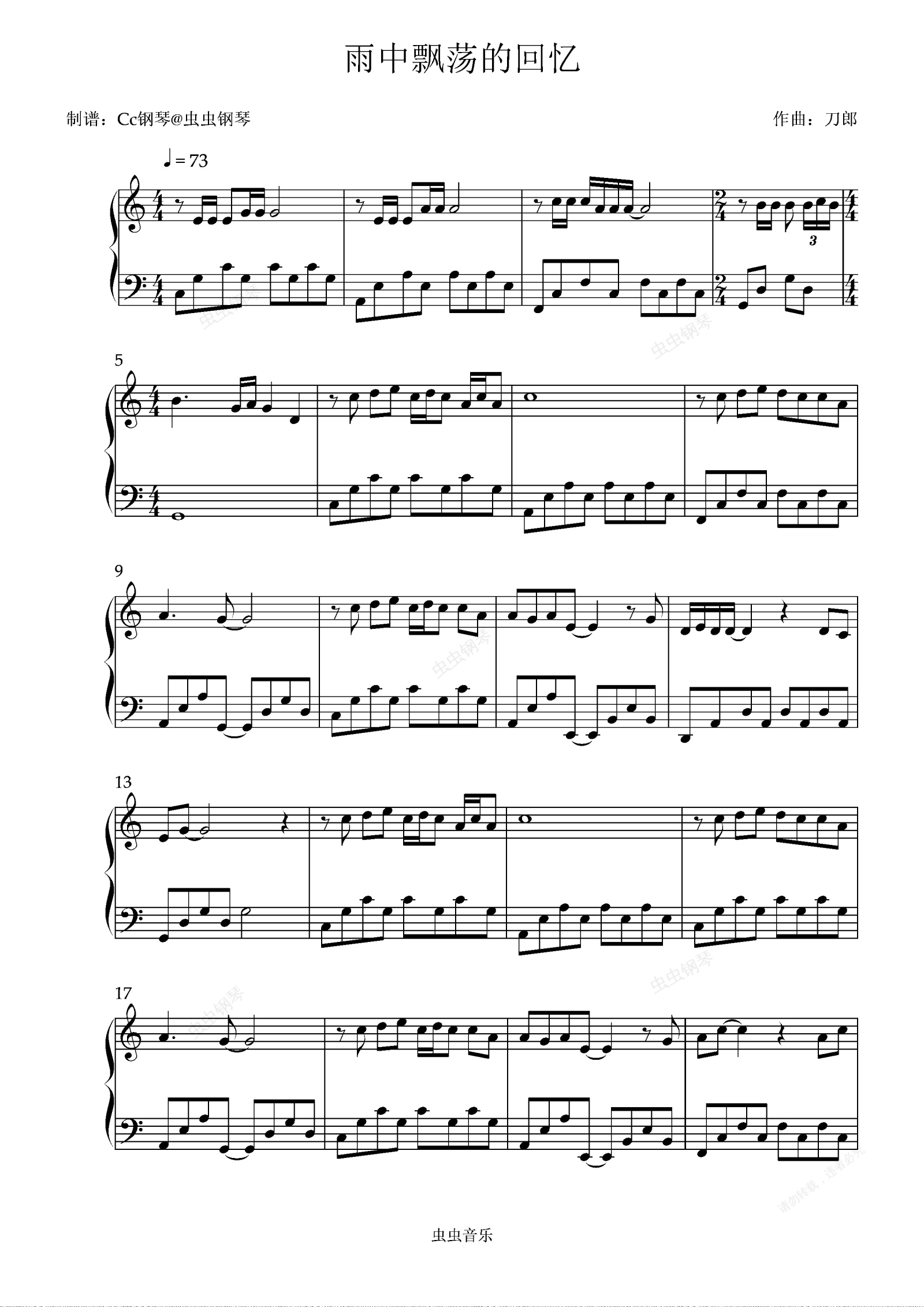 钢琴谱:雨中飘荡的回忆 C调 好听易上手