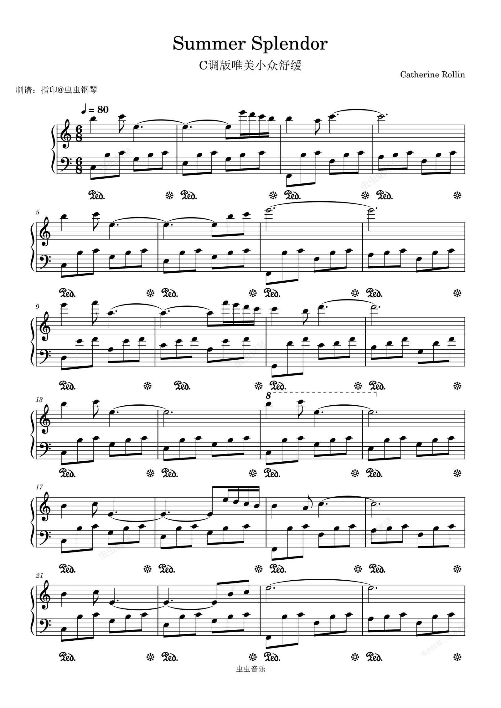 钢琴谱:C调版唯美小众舒缓《Summer Splendor》