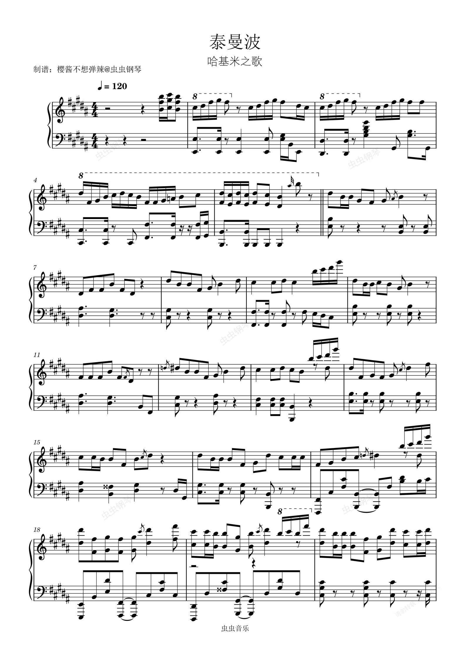 钢琴谱:泰曼波 哈基米之歌