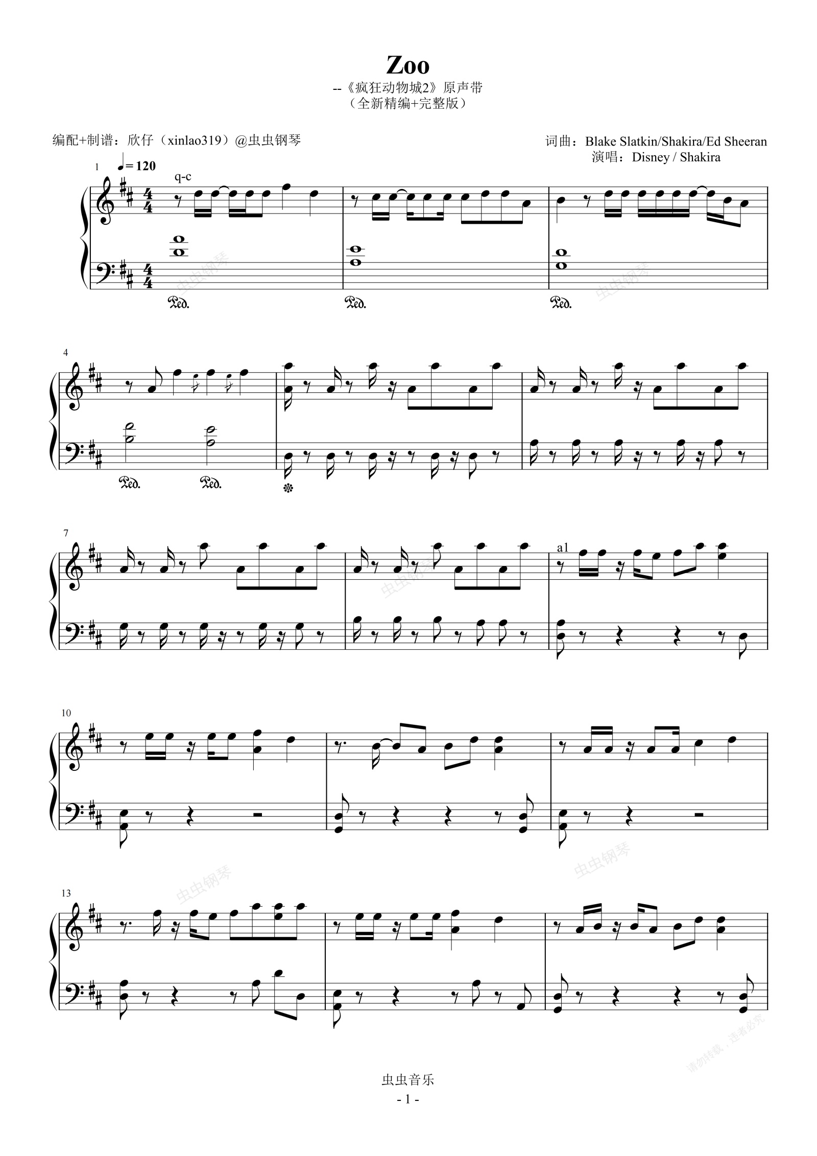 钢琴谱:Zoo(原调D、《疯狂动物城2》原声带、完整版)