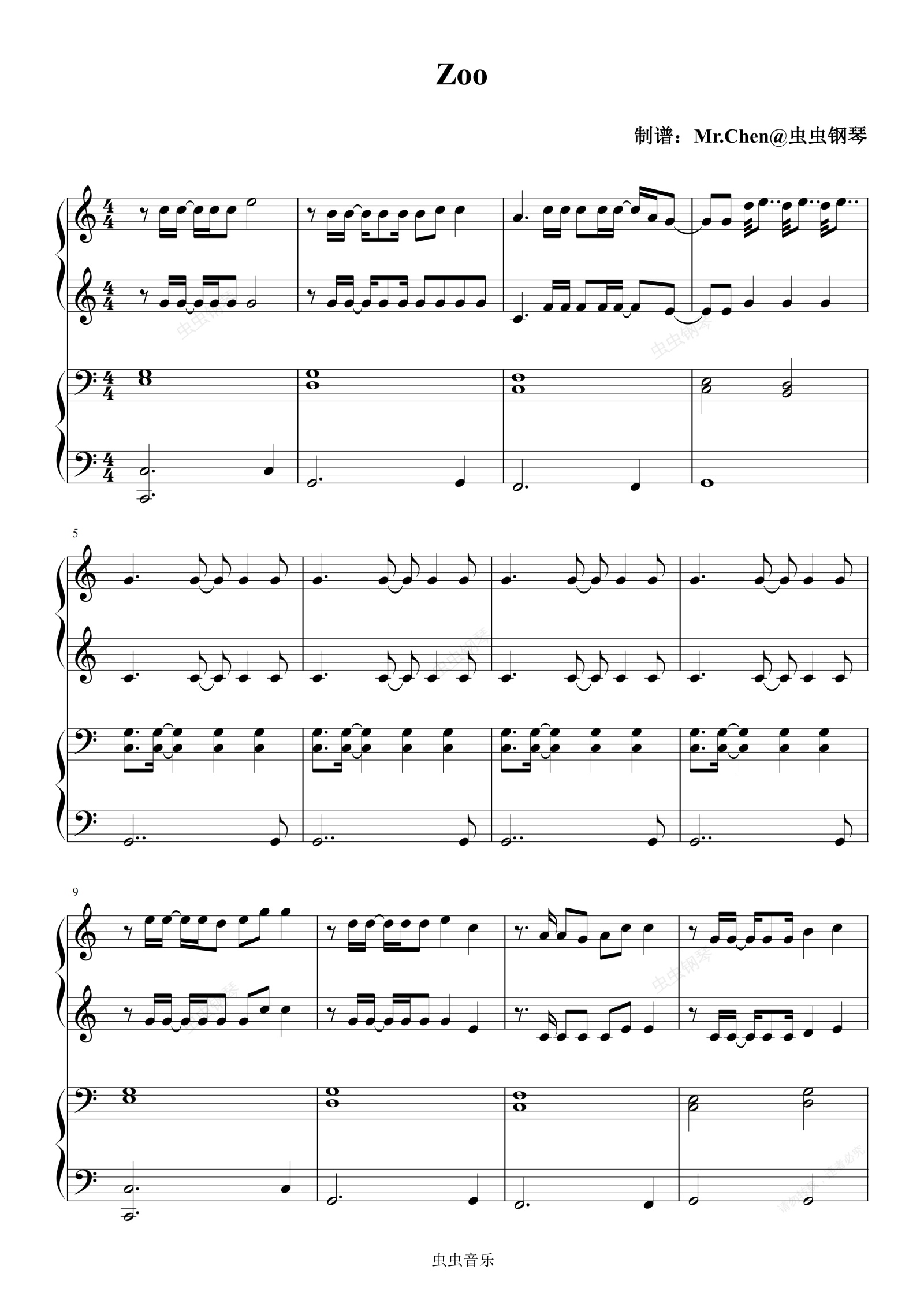 钢琴谱:Zoo (四手联弹)C调 - 动画电影《疯狂动物城2》主题曲