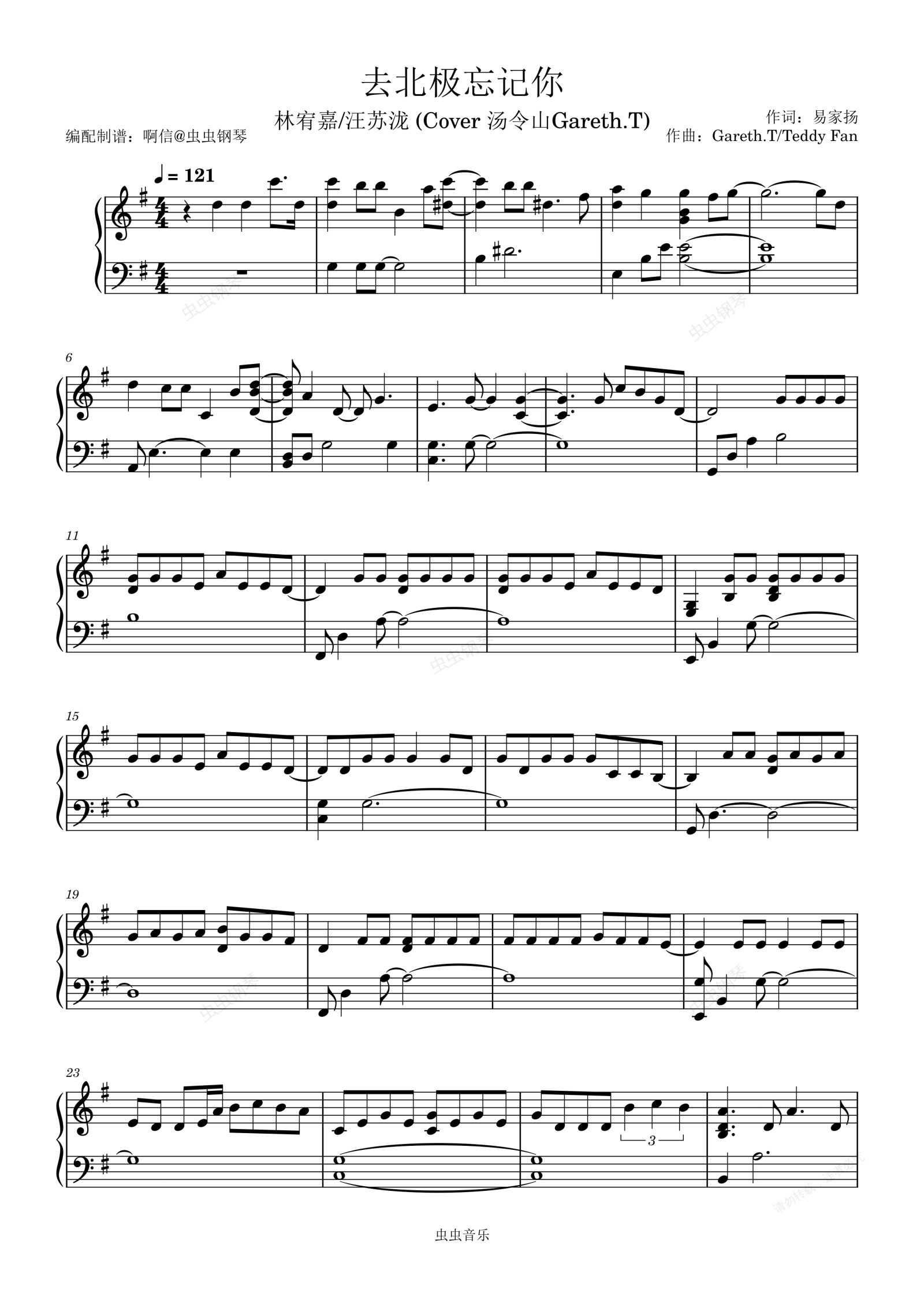 钢琴谱:去北极忘记你-林宥嘉 / 汪苏泷 (Cover汤令山Gareth.T)-G调