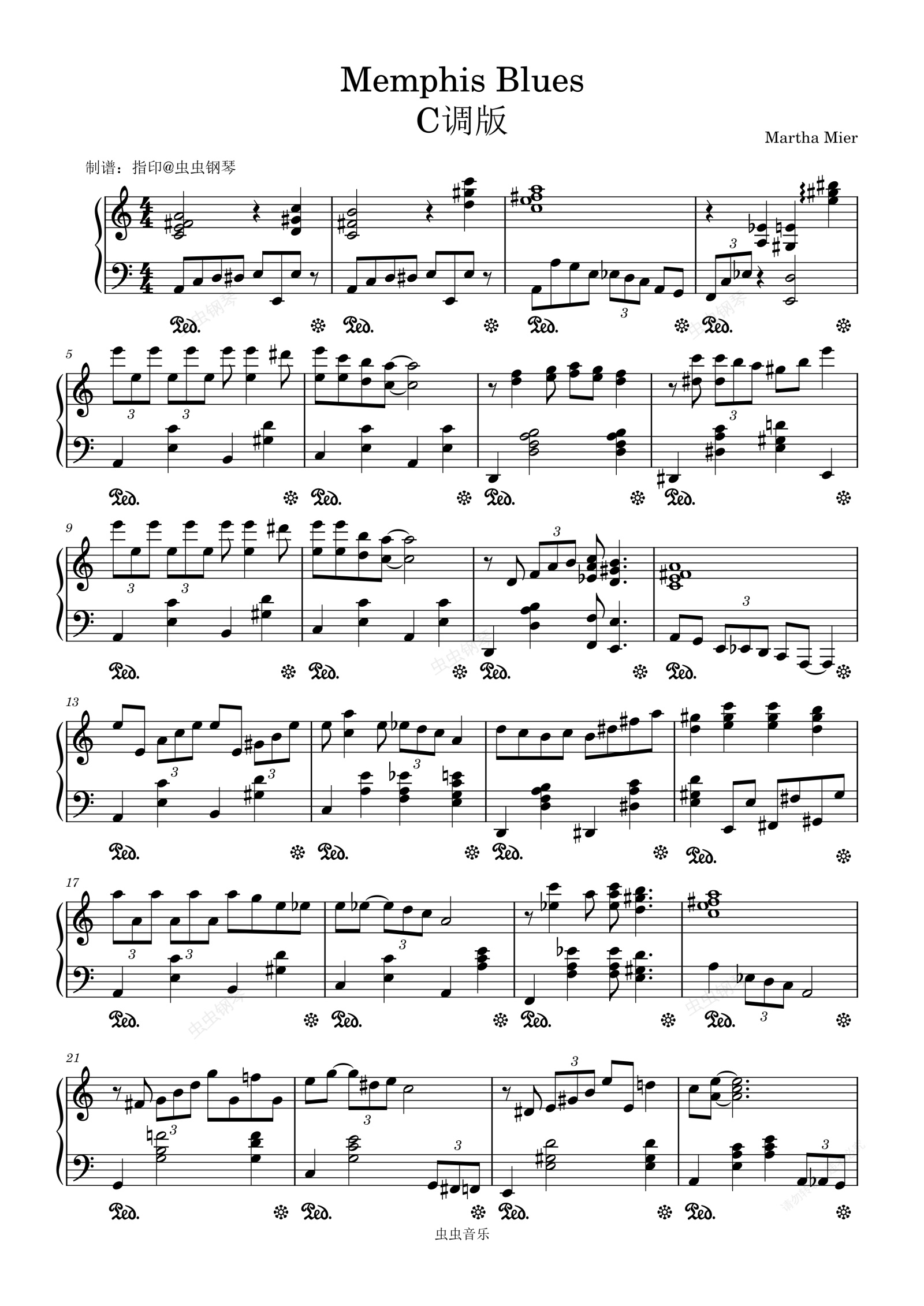 钢琴谱:C调版布鲁斯风格《Memphis Blues》
