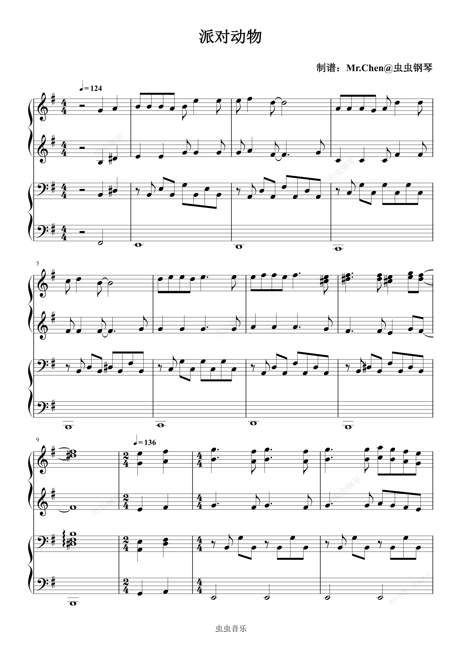 钢琴谱:派对动物 (四手联弹)- 《疯狂动物城2》中文主题曲