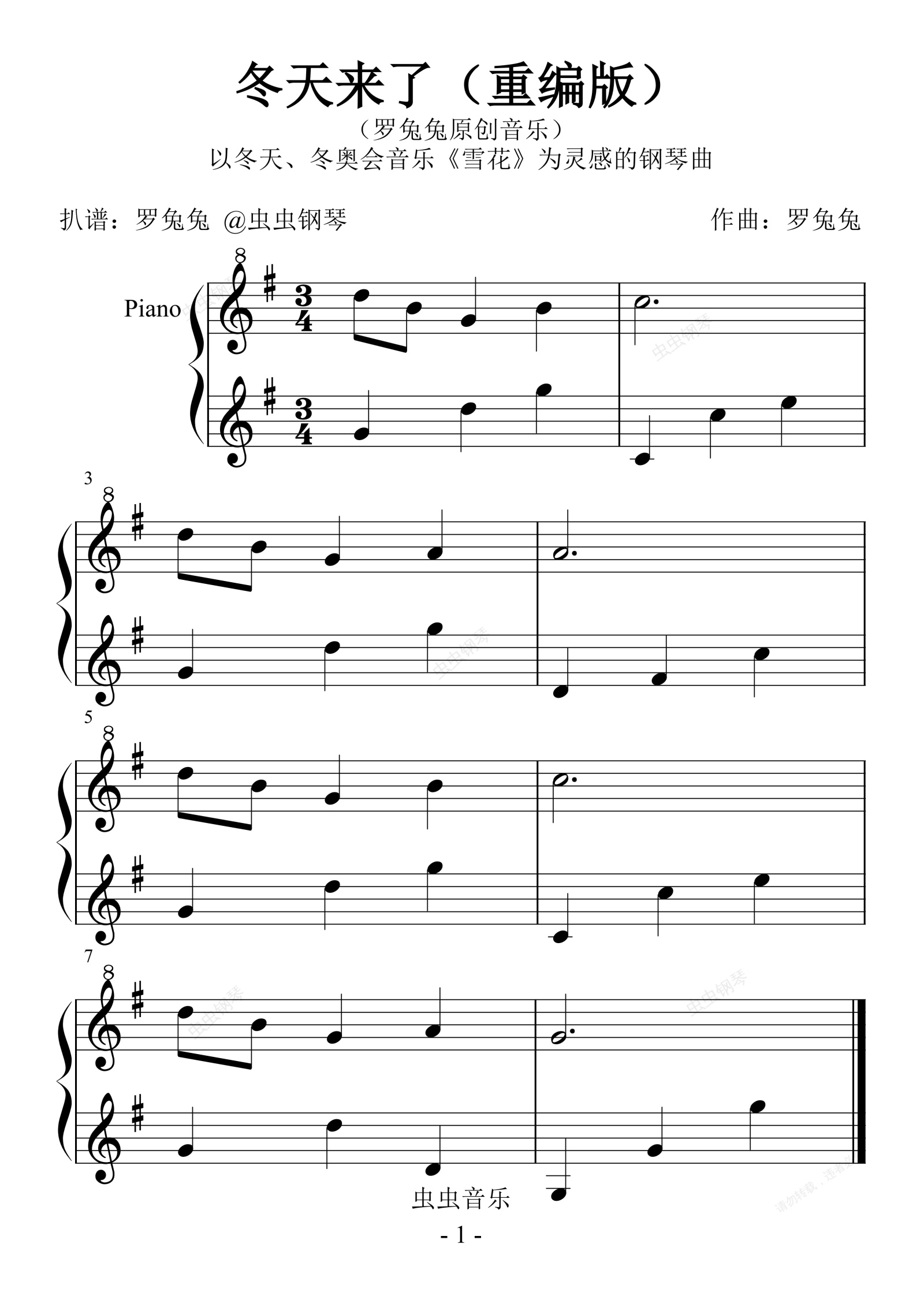 钢琴谱:冬天来了(重编版)(罗兔兔原创音乐)