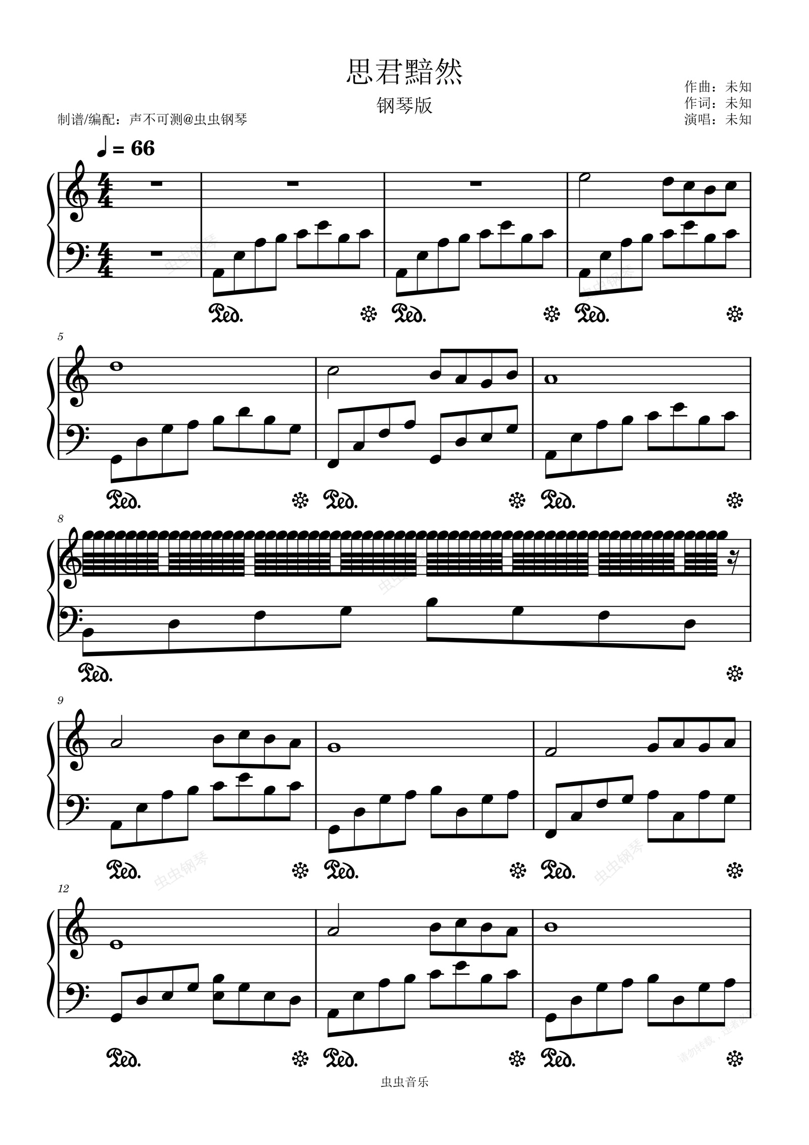 钢琴谱:《思君黯然》钢琴版 - 声不可测