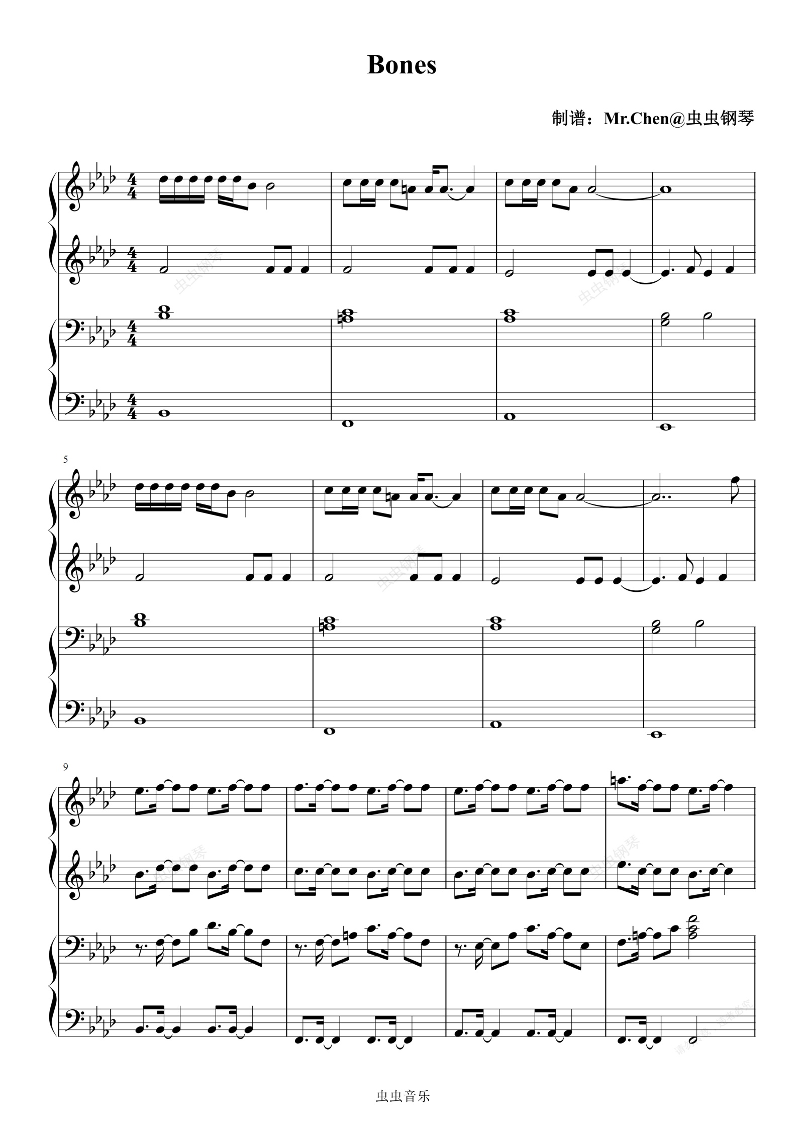 钢琴谱:Bones (四手联弹)- Imagine Dragons