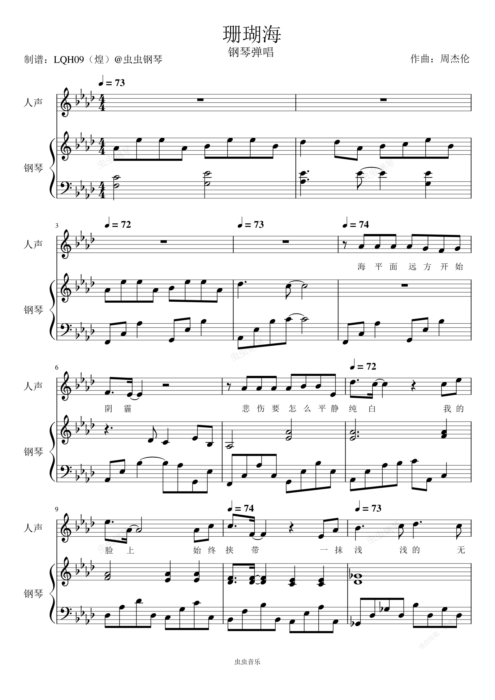 钢琴谱:珊瑚海-周杰伦 弹唱