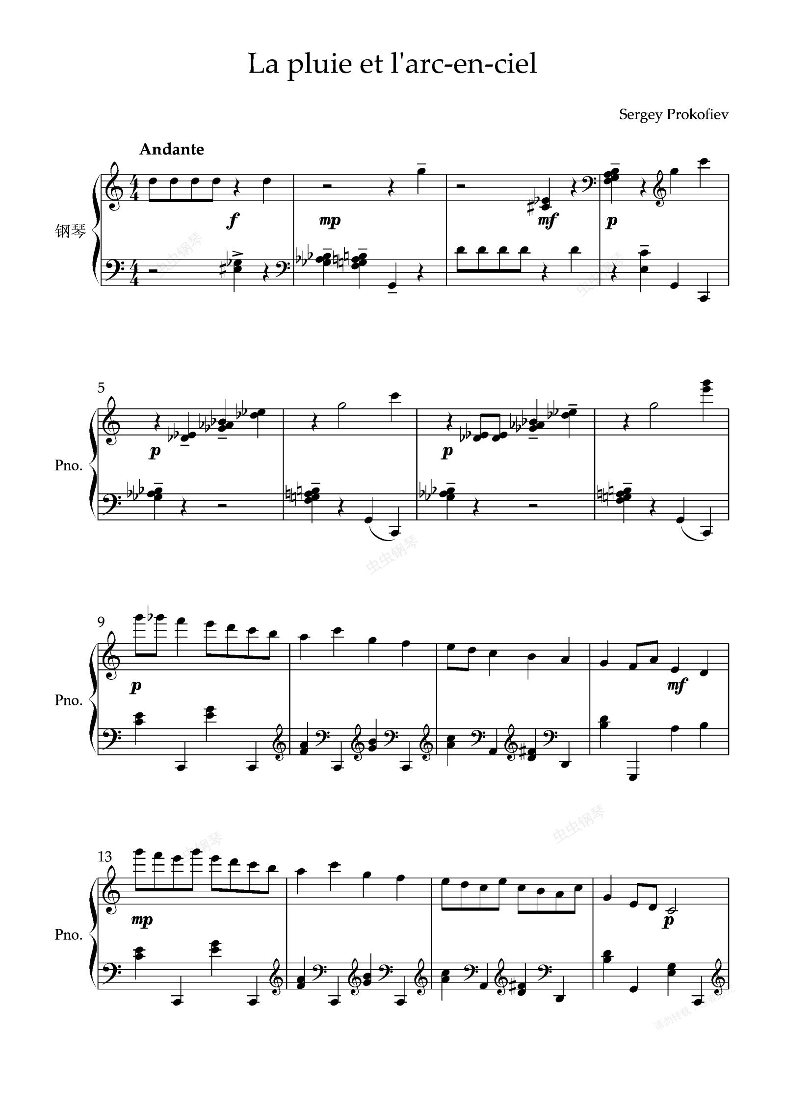 钢琴谱:D-3.La pluie et l'arc-en-ciel(Op. 65 No 8 )