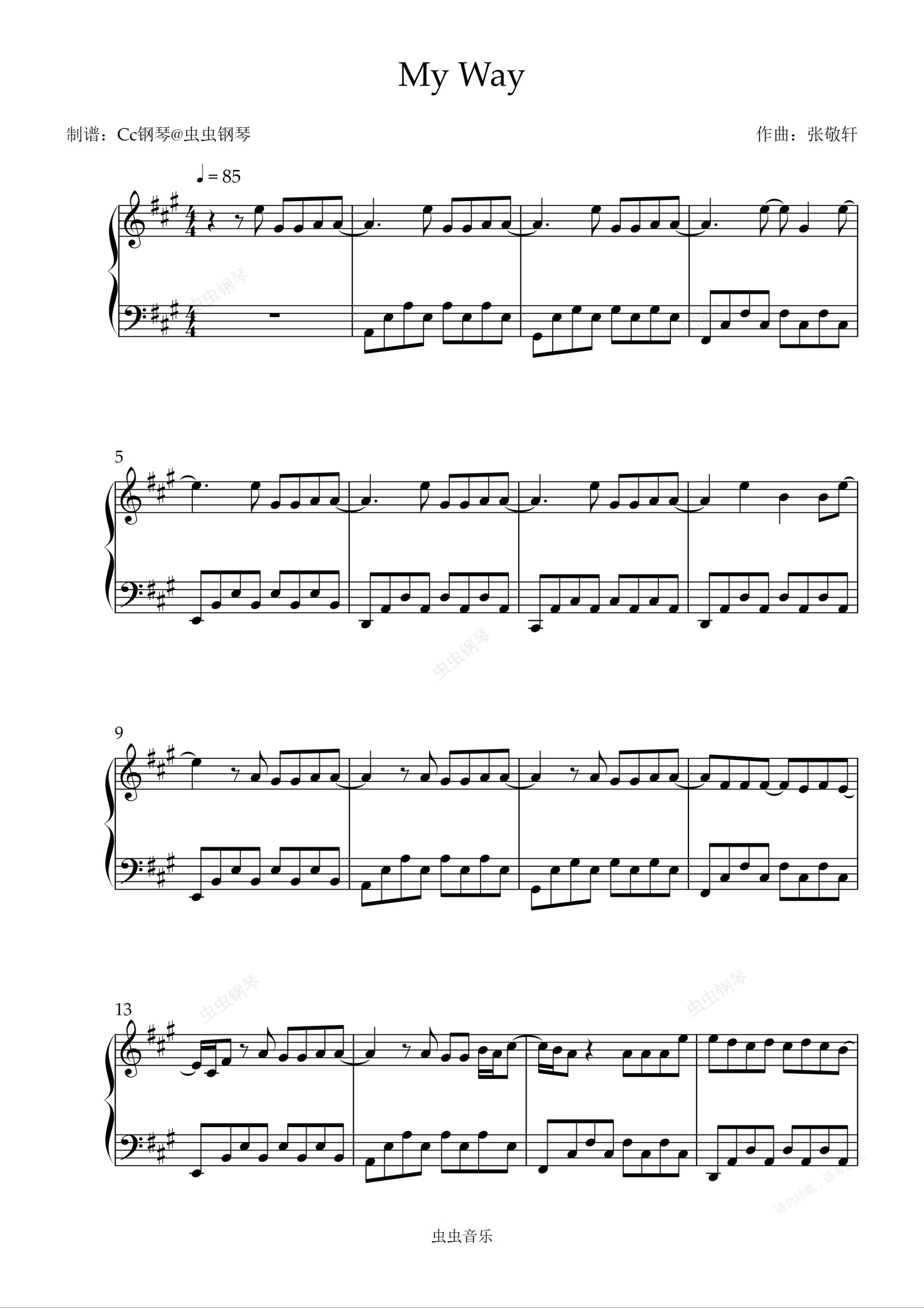 钢琴谱:My Way 原调 好听易上手