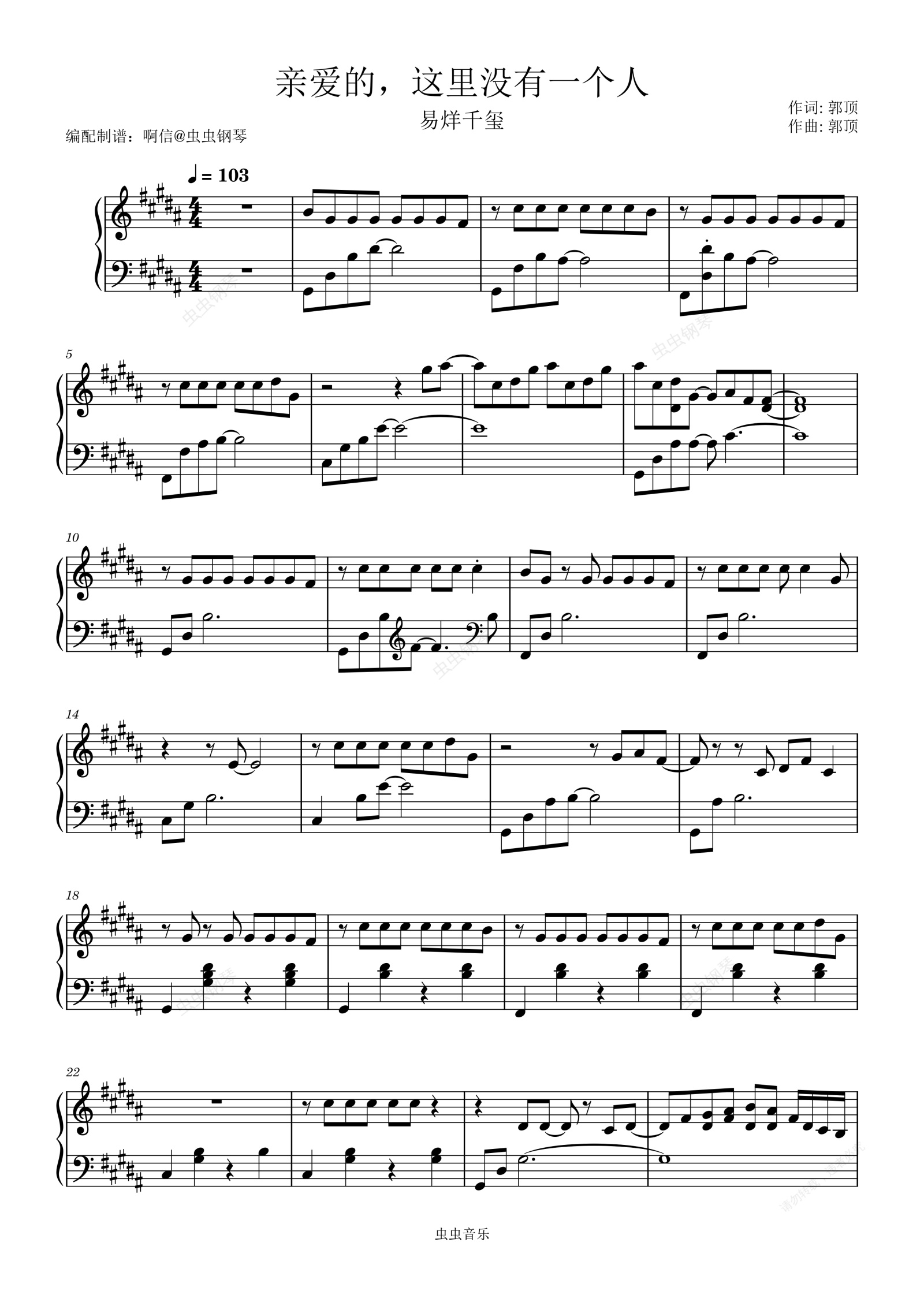 钢琴谱:易烊千玺-亲爱的,这里没有一个人-B调礐嶨2025(Live)