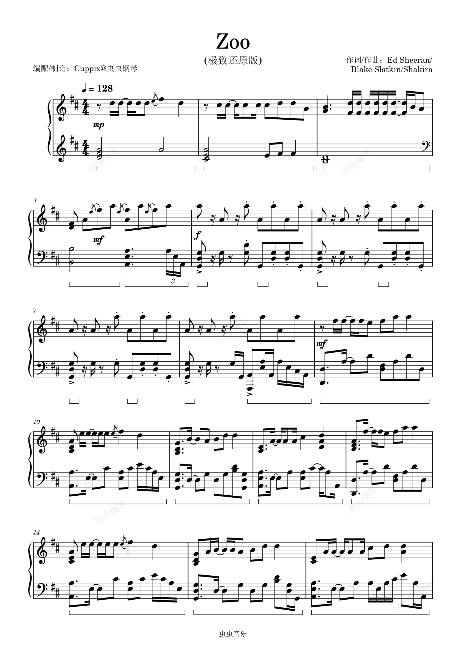 钢琴谱:《Zoo》Cuppix编配-极致还原(疯狂动物城2主题曲)