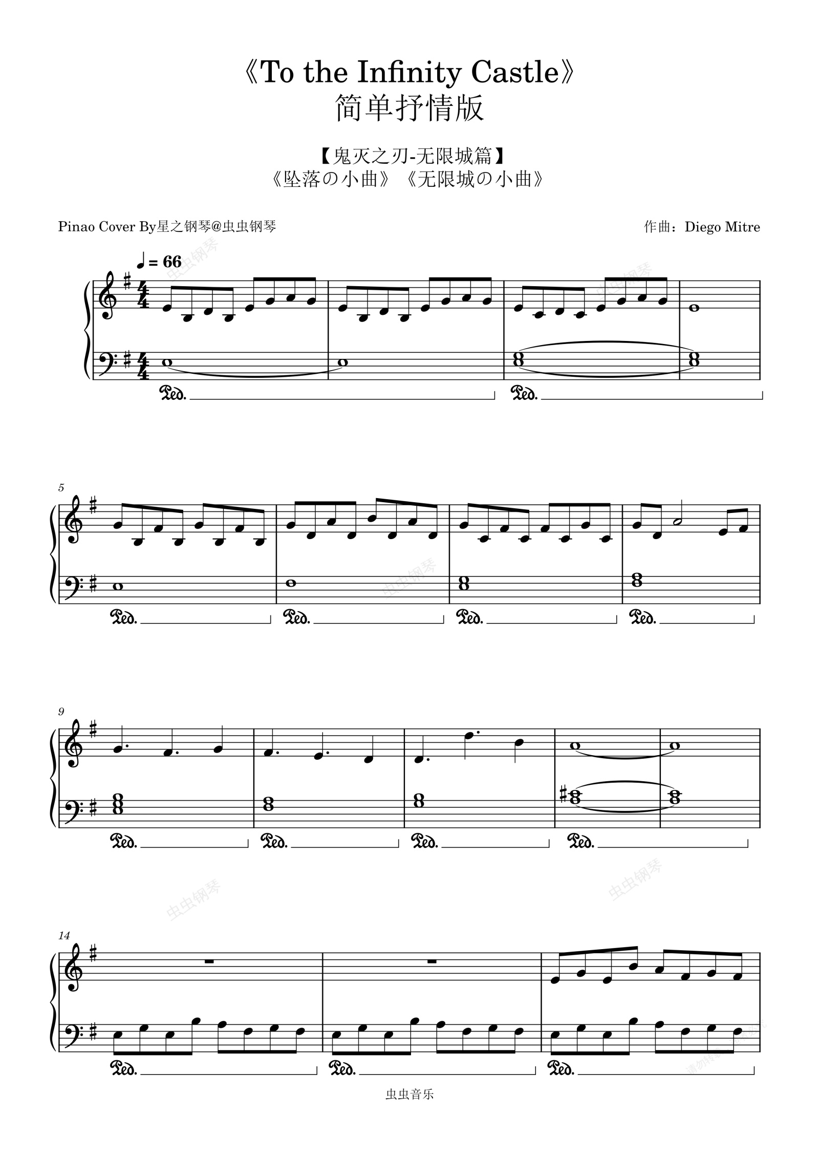 钢琴谱:【鬼灭之刃】无限城の小曲《To the Infinity Castle》 钢琴简单抒情版~星之钢琴~