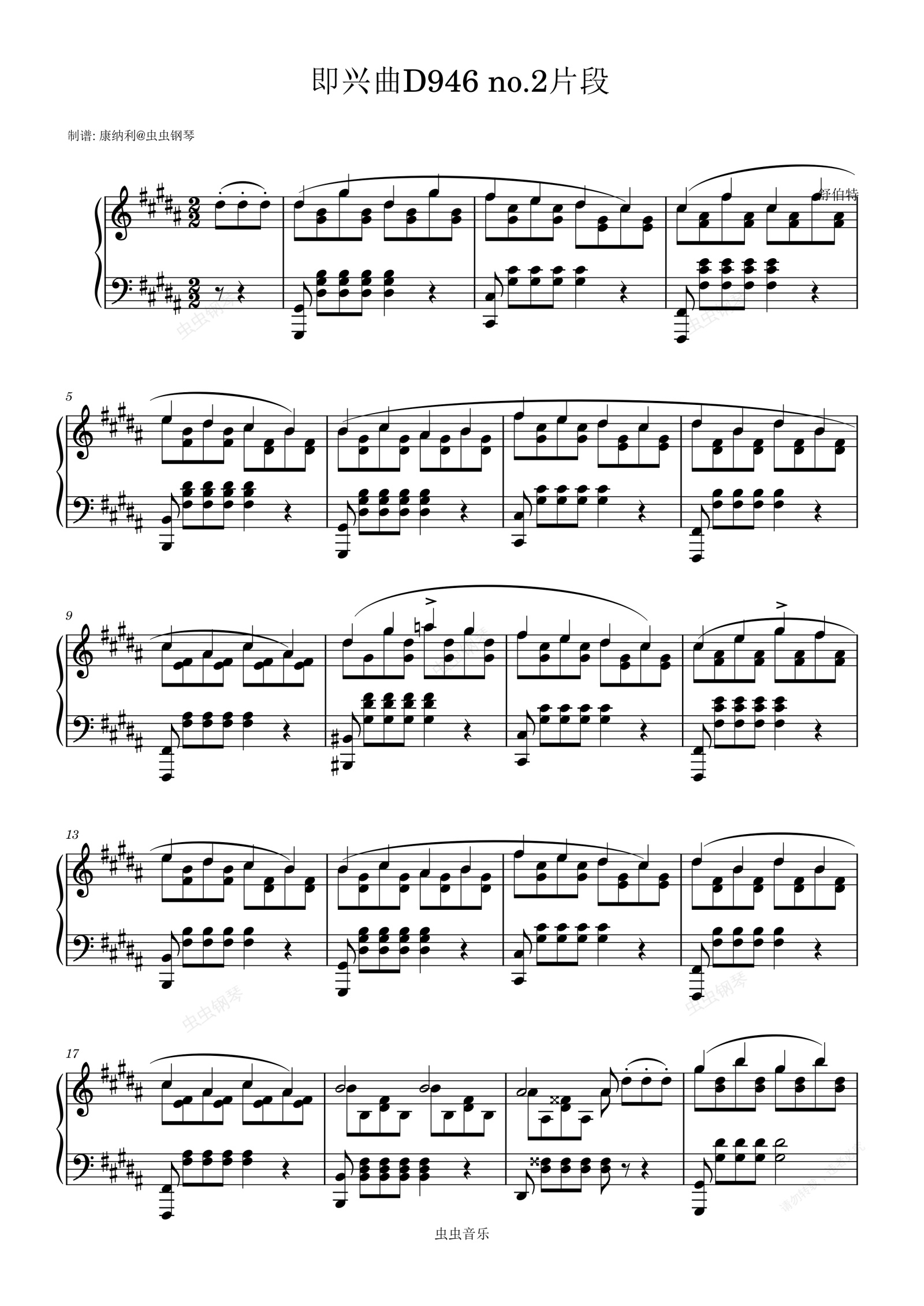 舒伯特的《即兴曲》D.946, No.2(降E大调)是其晚期钢琴作品中的杰作,创作于1828年,也是他生前最后出版的钢琴小品之一。