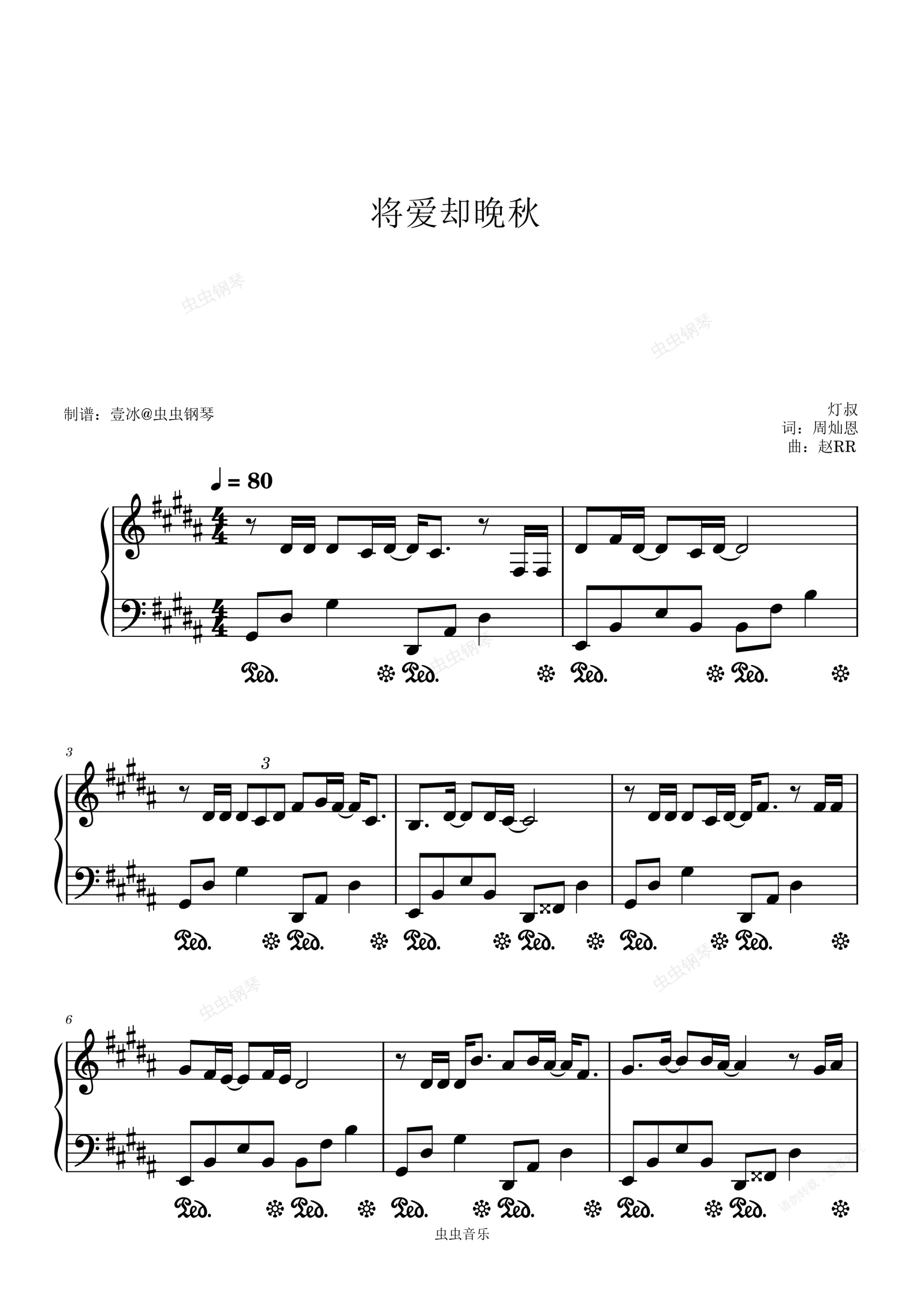 钢琴谱:将爱却晚秋-灯叔 原调