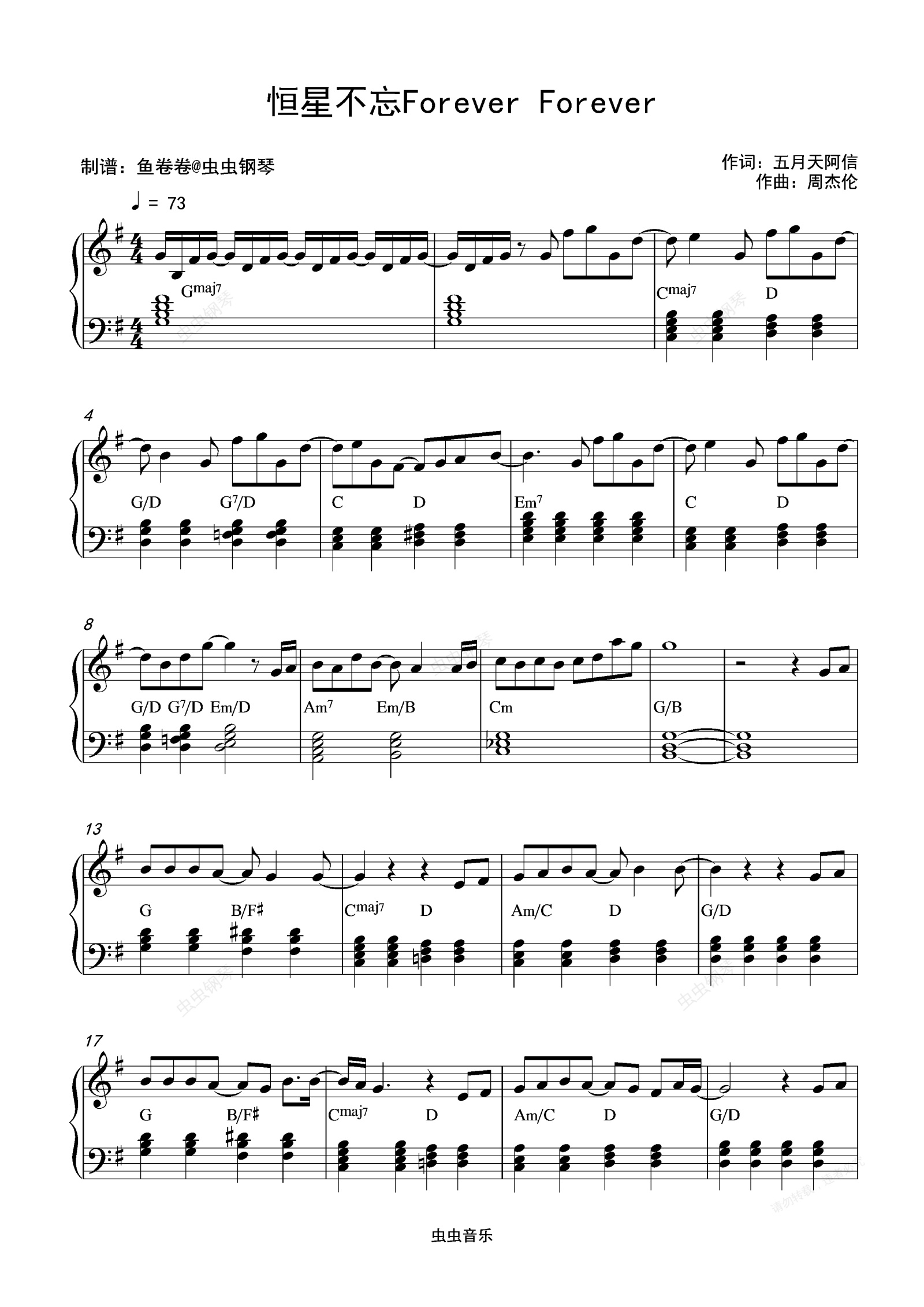 钢琴谱:恒星不忘Forever Forever-周杰伦言承旭吴建豪周渝民五月天阿信 钢琴谱