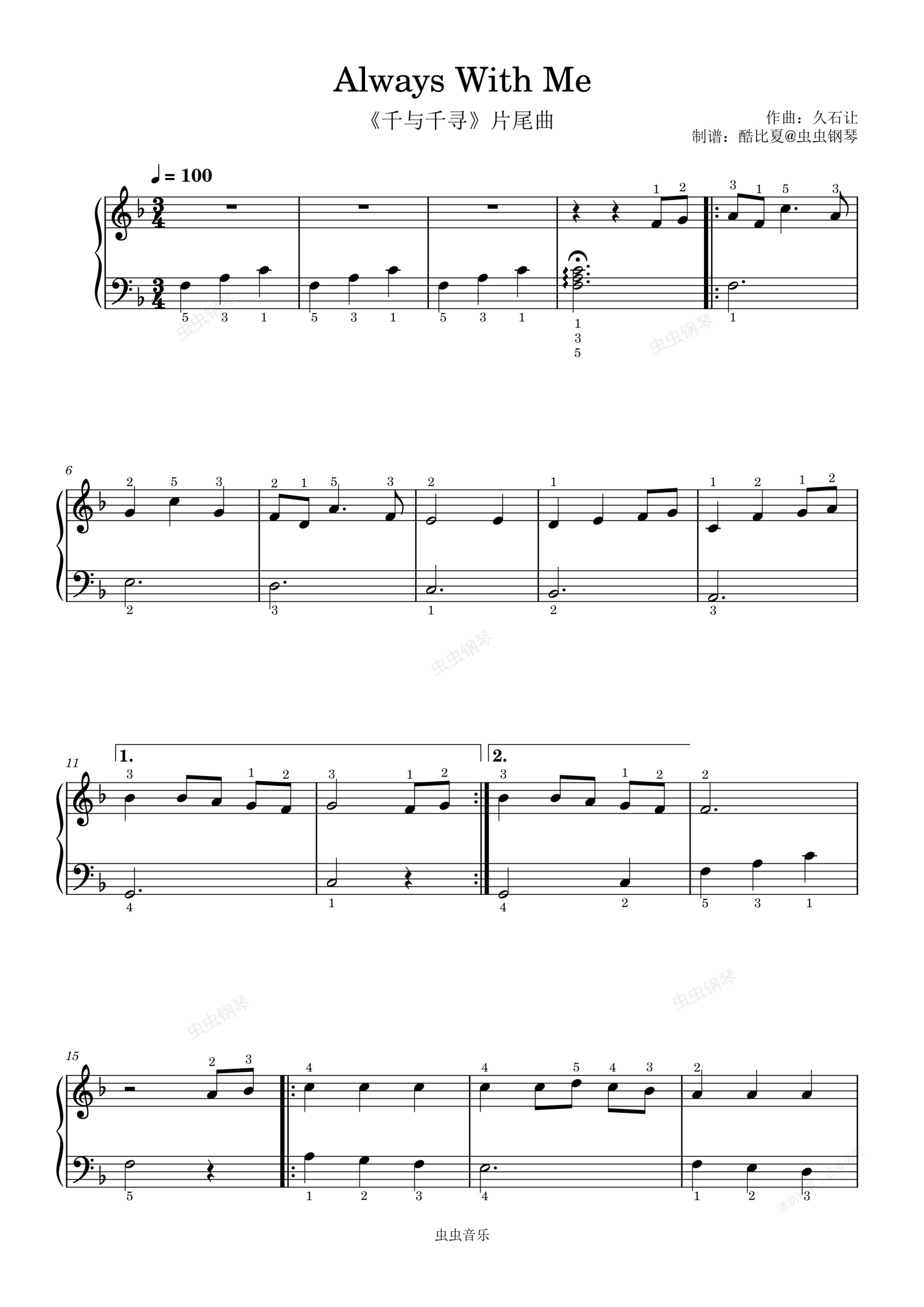 钢琴谱:always with me千与千寻片尾曲简易版