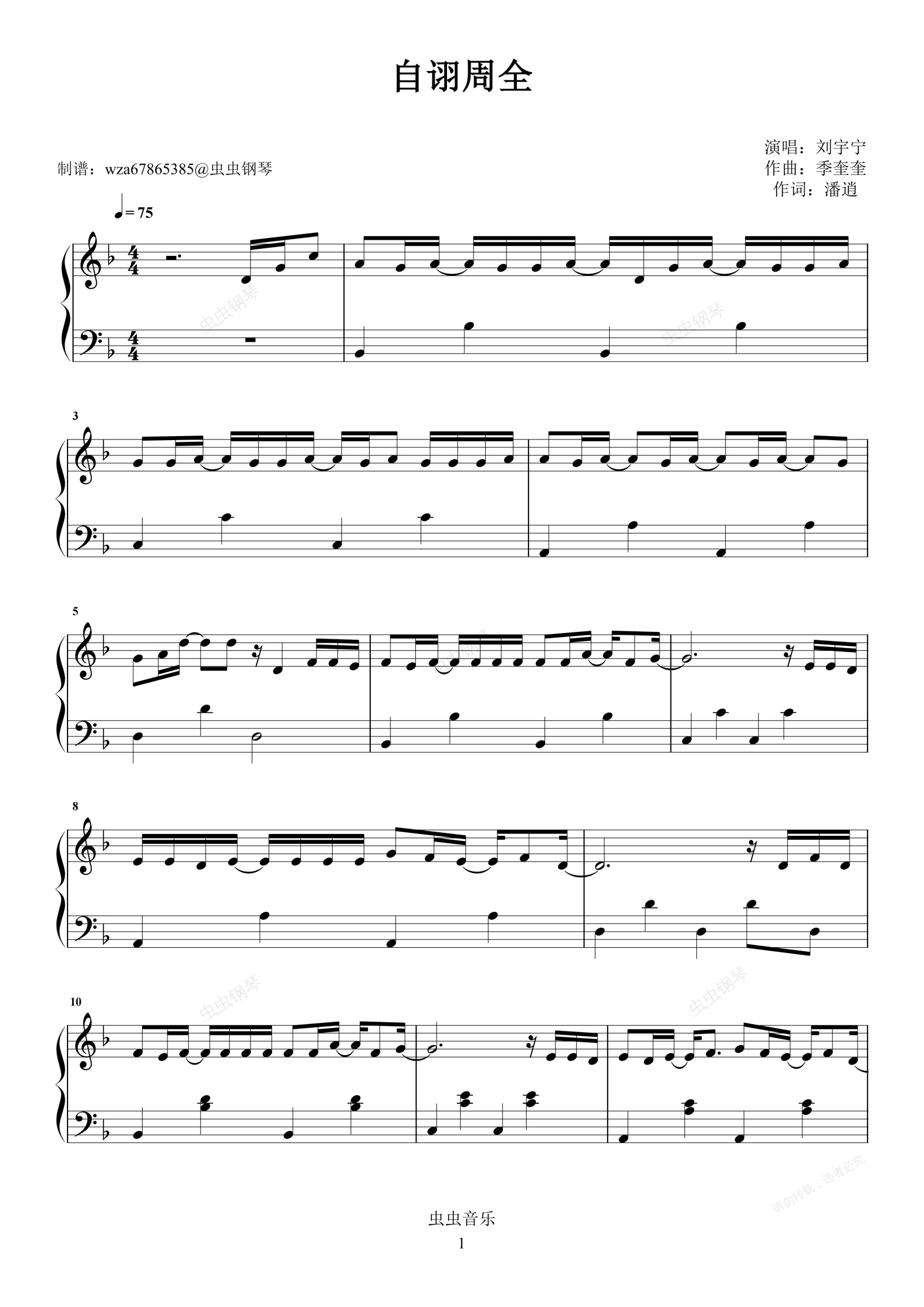 钢琴谱:自诩周全