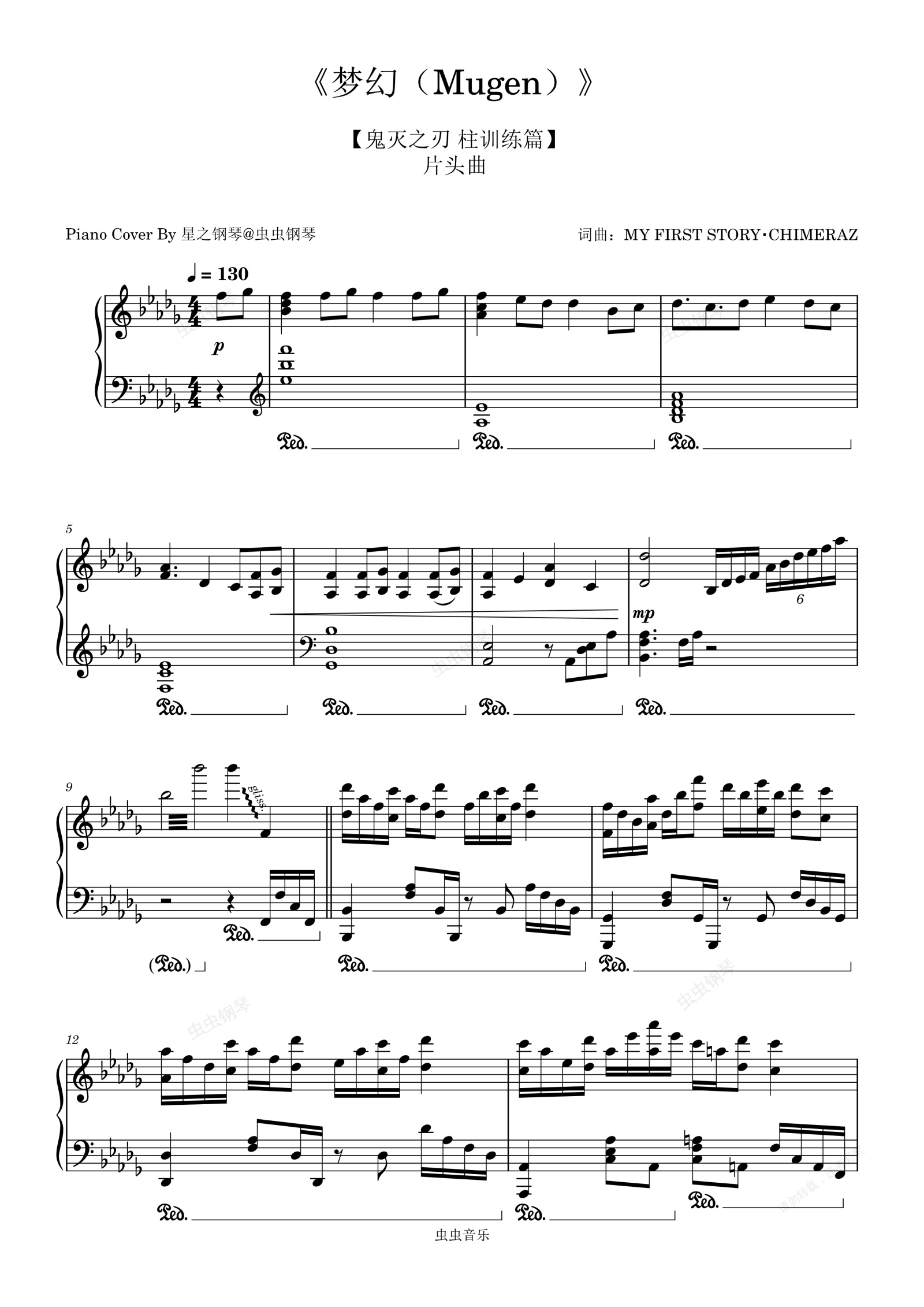 钢琴谱:【鬼灭之刃-柱训练篇】片头曲《梦幻》钢琴华丽独奏版~星之钢琴~