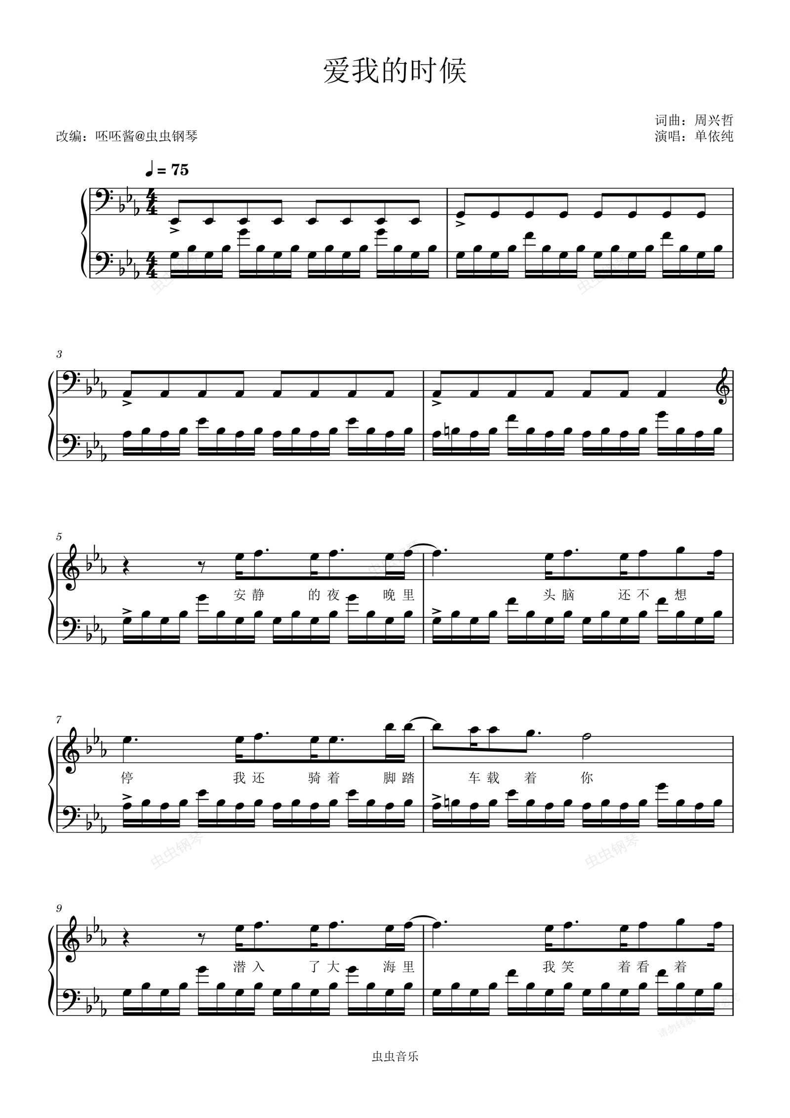 钢琴谱:爱我的时候【演唱会版】-单依纯-Eb调