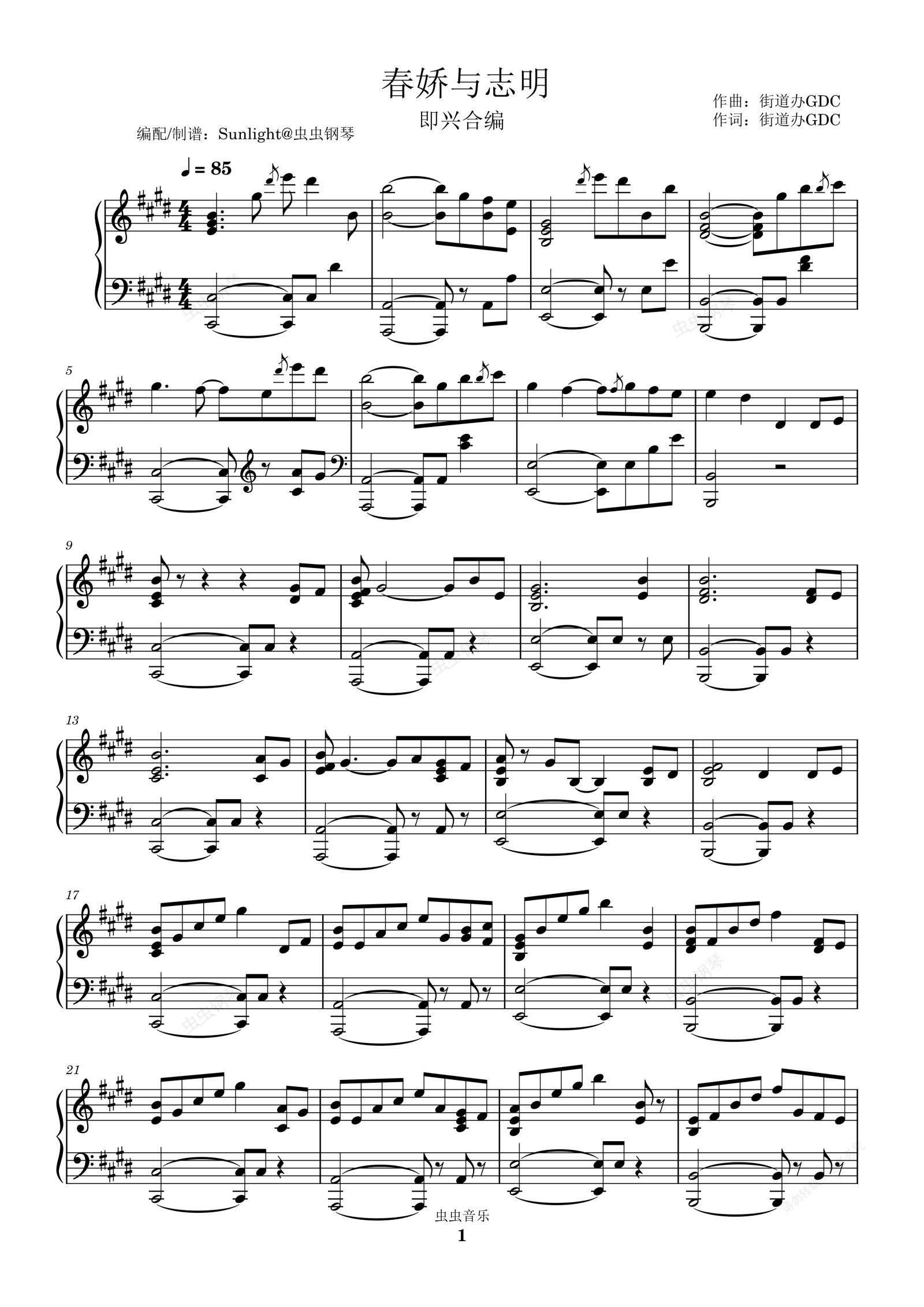 钢琴谱:春娇与志明即兴合编版(高燃)