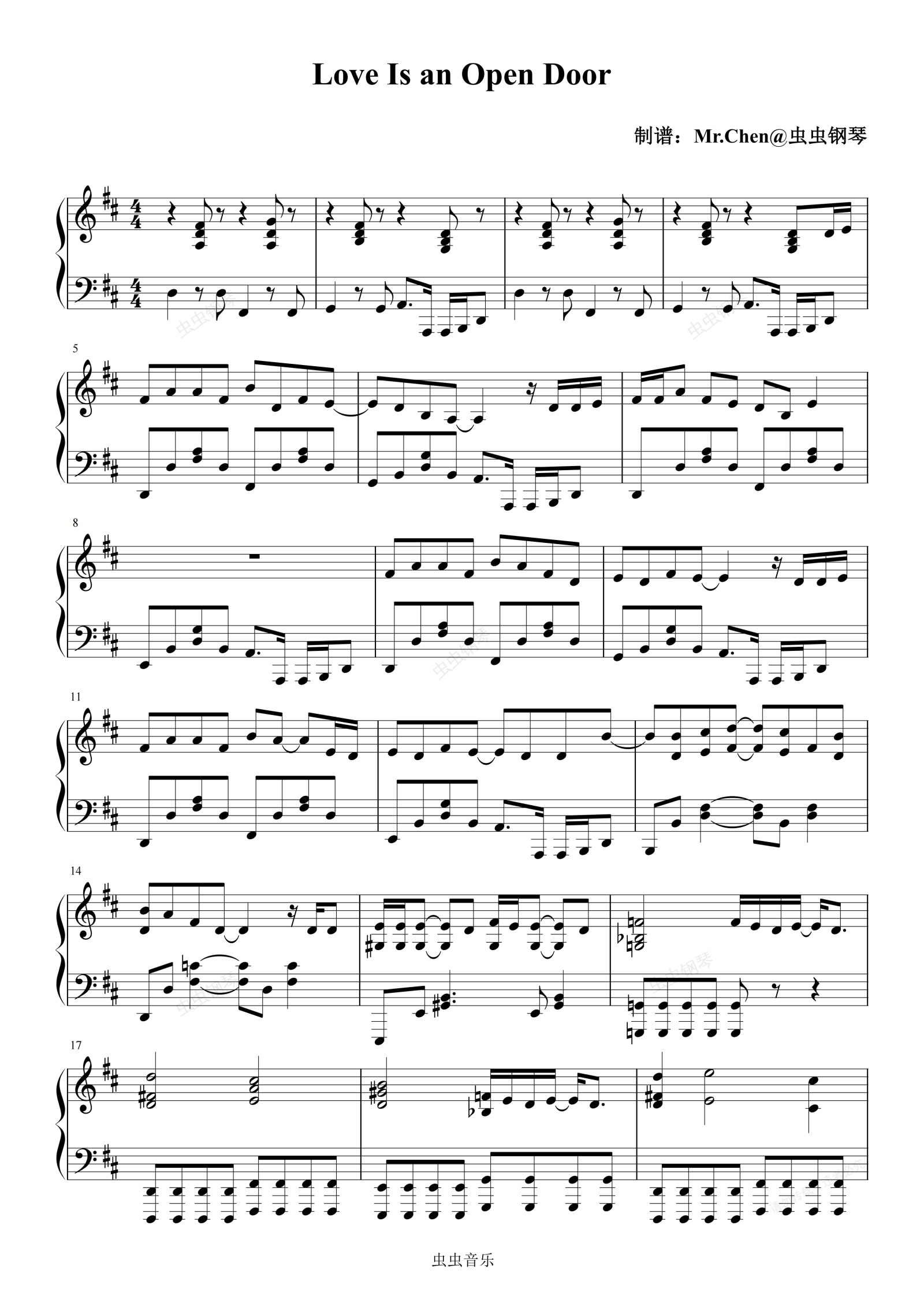 钢琴谱:Love Is an Open Door - 动画电影《冰雪奇缘》插曲