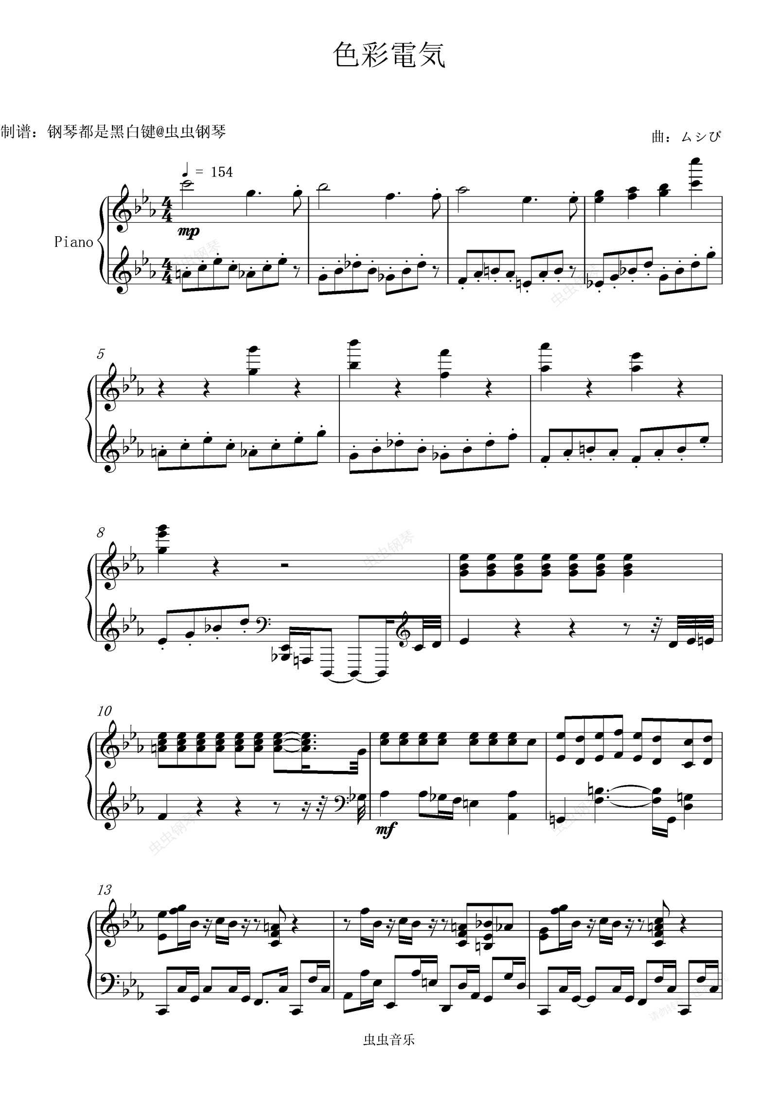 钢琴谱:【初音ミク】「色彩电气」色彩電気