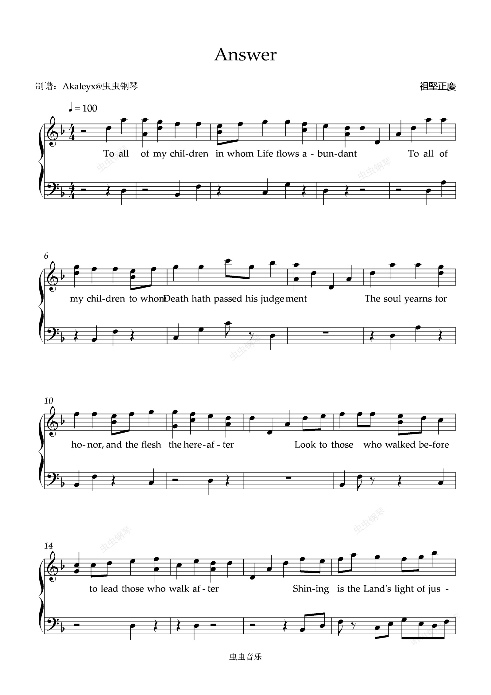 钢琴谱:【最终幻想14】Answer(英语弹唱版)