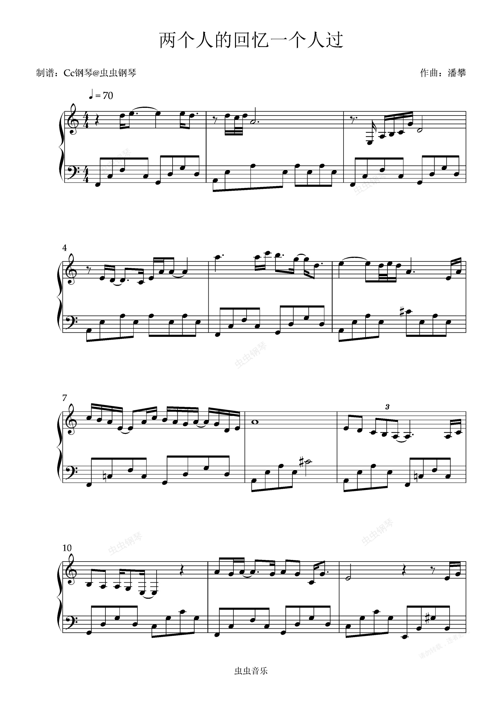 钢琴谱:两个人的回忆一个人过 C调 好听易上手